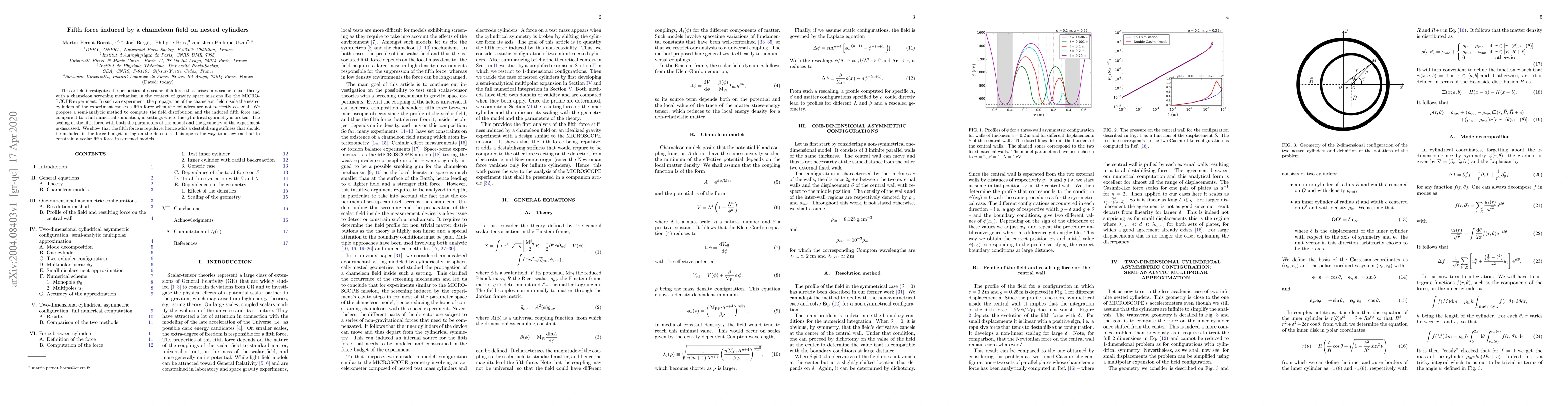 This paper explores a scalar fifth force generated by a chameleon field in scalar tensor-theory, relevant for space missions like MICROSCOPE. It proposes a semi-analytic method to compute the field distribution and the induced fifth force in non-coaxial nested cylinders, revealing a repulsive force that destabilizes the detector.