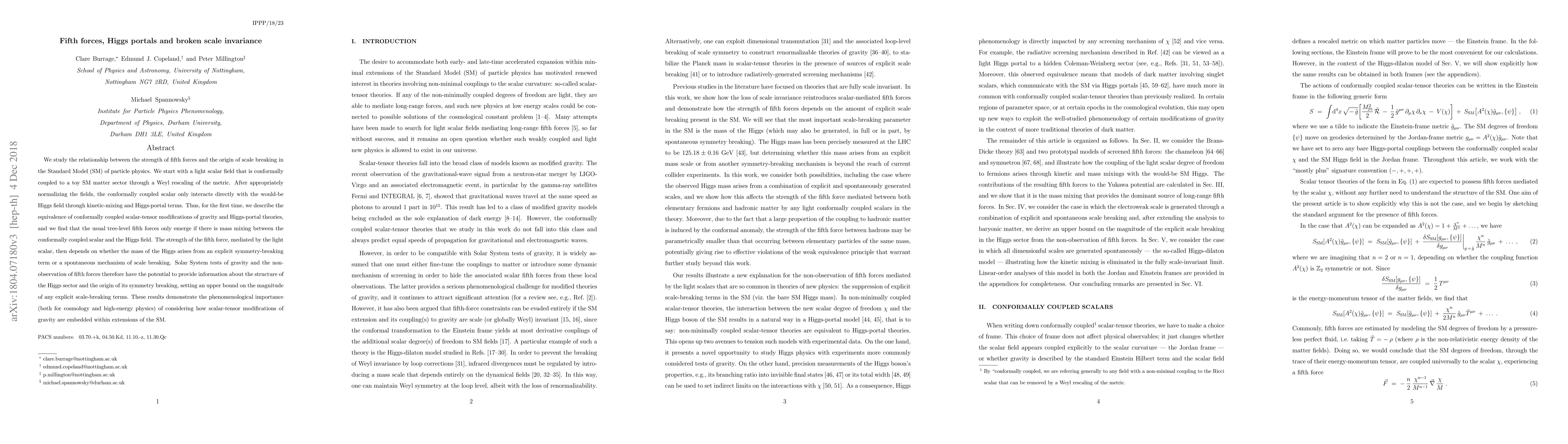 We study the relationship between the strength of fifth forces and the origin of scale breaking in the Standard Model (SM) of particle physics. We start with a light scalar field that is conformally coupled to a toy SM matter sector through a Weyl rescaling of the metric. After appropriately normalizing the fields, the conformally coupled scalar only interacts directly with the would-be Higgs field through kinetic-mixing and Higgs-portal terms. Thus, for the first time, we describe the equivalence of conformally coupled scalar-tensor modifications of gravity and Higgs-portal theories, and we find that the usual tree-level fifth forces only emerge if there is mass mixing between the conformally coupled scalar and the Higgs field. The strength of the fifth force, mediated by the light scalar, then depends on whether the mass of the Higgs arises from an explicit symmetry-breaking term or a spontaneous mechanism of scale breaking. Solar System tests of gravity and the non-observation of fifth forces therefore have the potential to provide information about the structure of the Higgs sector and the origin of its symmetry breaking, setting an upper bound on the magnitude of any explicit scale-breaking terms. These results demonstrate the phenomenological importance (both for cosmology and high-energy physics) of considering how scalar-tensor modifications of gravity are embedded within extensions of the SM.