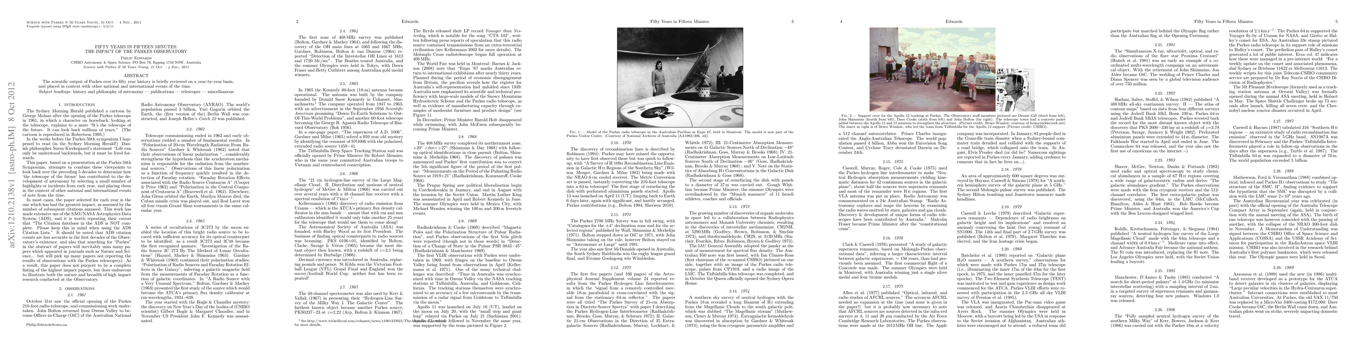 The scientific output of Parkes over its fifty year history is briefly reviewed on a year-by-year basis, and placed in context with other national and international events of the time.