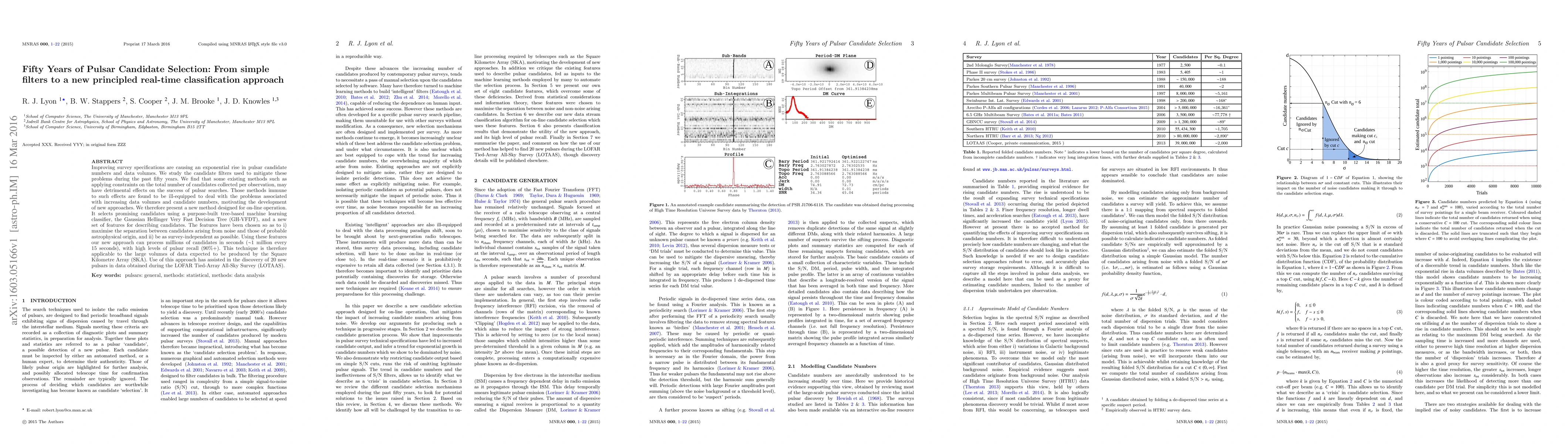 This paper reviews fifty years of pulsar candidate selection methods and introduces a new real-time classification approach using a Gaussian Hellinger Very Fast Decision Tree (GH-VFDT) to handle the exponential rise in data volumes. The new method features optimized selection criteria and achieves high pulsar recall rates, enabling the discovery of 20 new pulsars in the LOTAAS.