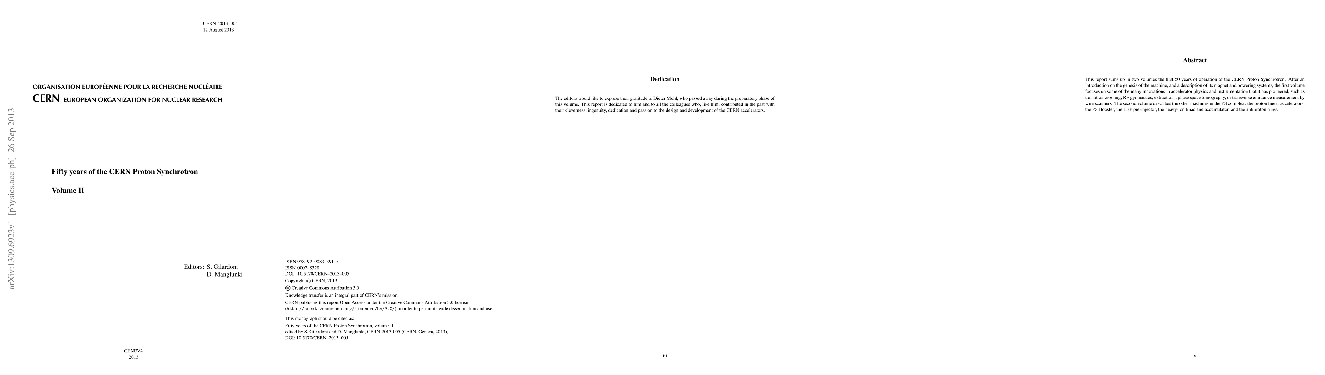 This report commemorates the first 50 years of CERN's Proton Synchrotron, highlighting its pioneering innovations in accelerator physics, and detailing the complex array of machines within its facility, including linear accelerators and pre-injectors.