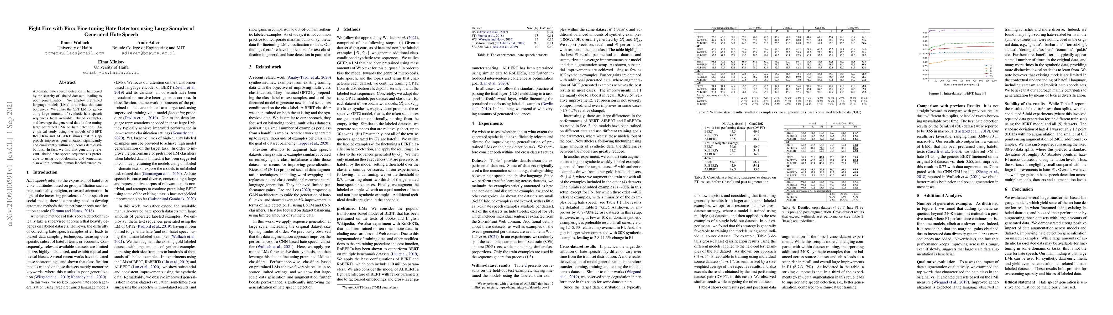 This paper explores using pretrained language models to generate synthetic hate speech data to improve automatic hate detection. By fine-tuning models like BERT, RoBERTa, and ALBERT with this generated data, the researchers found significant improvements in generalization compared to traditional human-labeled datasets.