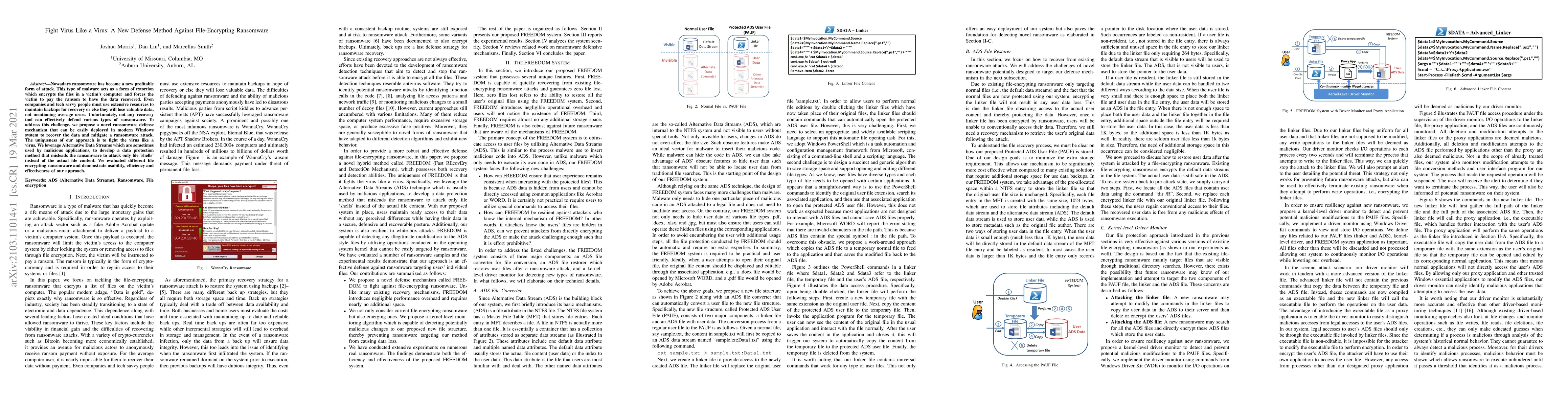 This paper proposes a novel defense mechanism against file-encrypting ransomware by leveraging Alternative Data Streams to mislead the ransomware, causing it to attack only file 'shells' instead of actual content. The method was evaluated against various ransomware types, demonstrating its usability, efficiency, and effectiveness.