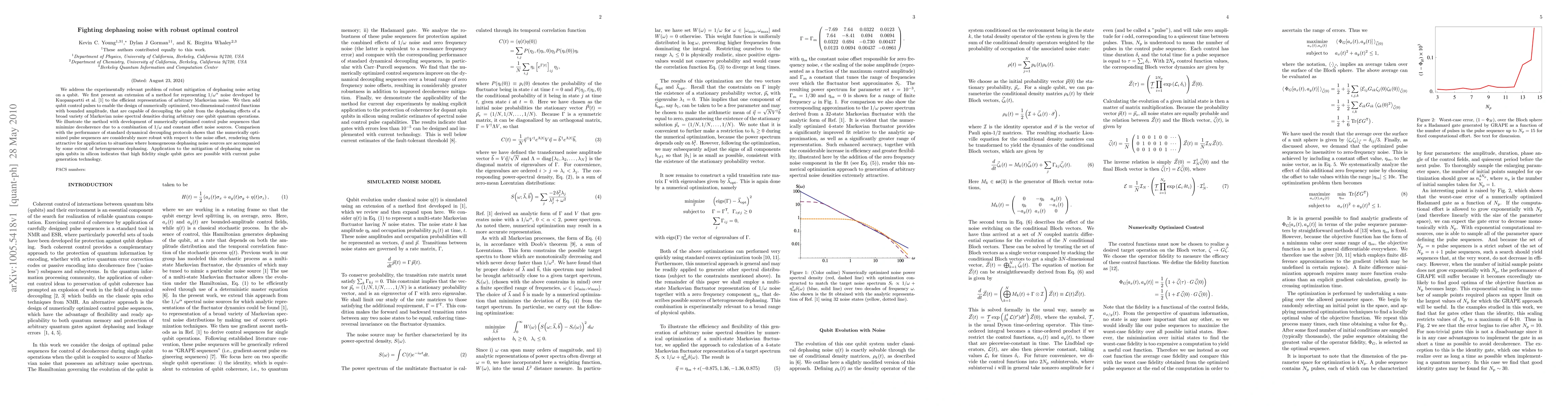 This paper presents an advanced method for mitigating dephasing noise on qubits using robust optimal control pulses, extending previous techniques to handle a wide range of Markovian noise. The optimized control sequences outperform standard protocols, demonstrating significant robustness against noise offsets and enabling high-fidelity single qubit operations in silicon spin qubits.