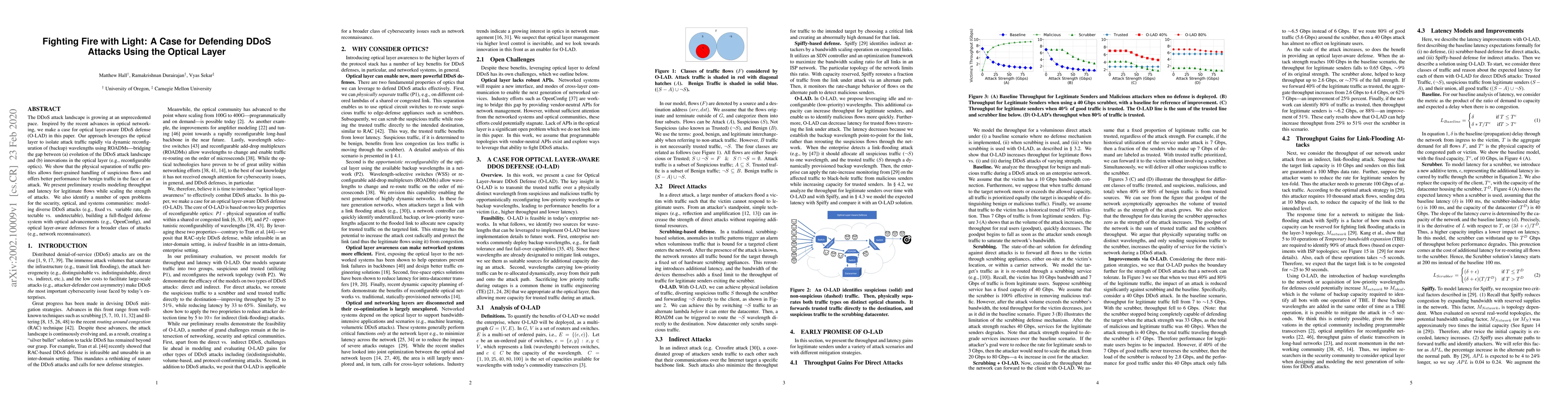 The DDoS attack landscape is growing at an unprecedented pace. Inspired by the recent advances in optical networking, we make a case for optical layer-aware DDoS defense (O-LAD) in this paper. Our approach leverages the optical layer to isolate attack traffic rapidly via dynamic reconfiguration of (backup) wavelengths using ROADMs---bridging the gap between (a) evolution of the DDoS attack landscape and (b) innovations in the optical layer (e.g., reconfigurable optics). We show that the physical separation of traffic profiles allows finer-grained handling of suspicious flows and offers better performance for benign traffic in the face of an attack. We present preliminary results modeling throughput and latency for legitimate flows while scaling the strength of attacks. We also identify a number of open problems for the security, optical, and systems communities: modeling diverse DDoS attacks (e.g., fixed vs. variable rate, detectable vs. undetectable), building a full-fledged defense system with optical advancements (e.g., OpenConfig), and optical layer-aware defenses for a broader class of attacks (e.g., network reconnaissance).