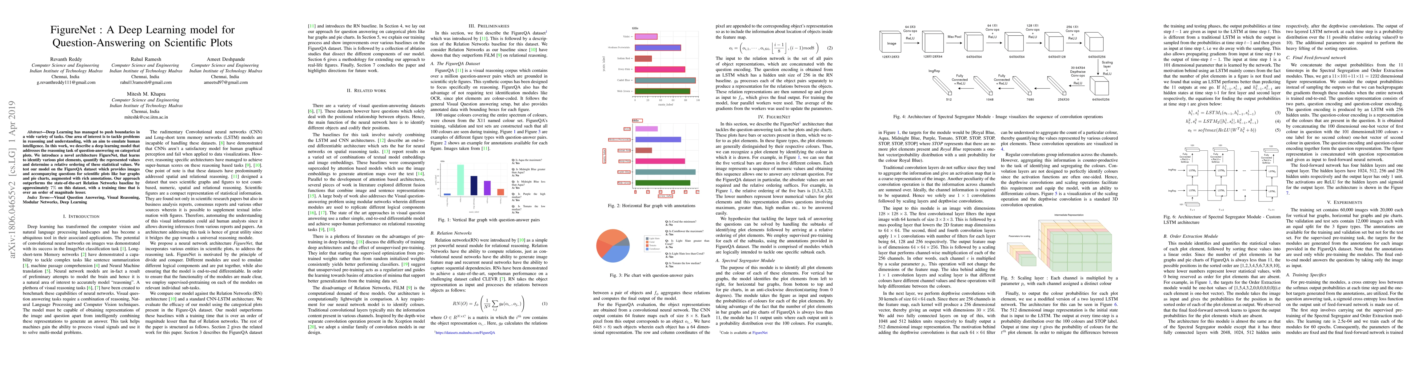 Deep Learning has managed to push boundaries in a wide variety of tasks. One area of interest is to tackle problems in reasoning and understanding, with an aim to emulate human intelligence. In this work, we describe a deep learning model that addresses the reasoning task of question-answering on categorical plots. We introduce a novel architecture FigureNet, that learns to identify various plot elements, quantify the represented values and determine a relative ordering of these statistical values. We test our model on the FigureQA dataset which provides images and accompanying questions for scientific plots like bar graphs and pie charts, augmented with rich annotations. Our approach outperforms the state-of-the-art Relation Networks baseline by approximately $7\%$ on this dataset, with a training time that is over an order of magnitude lesser.