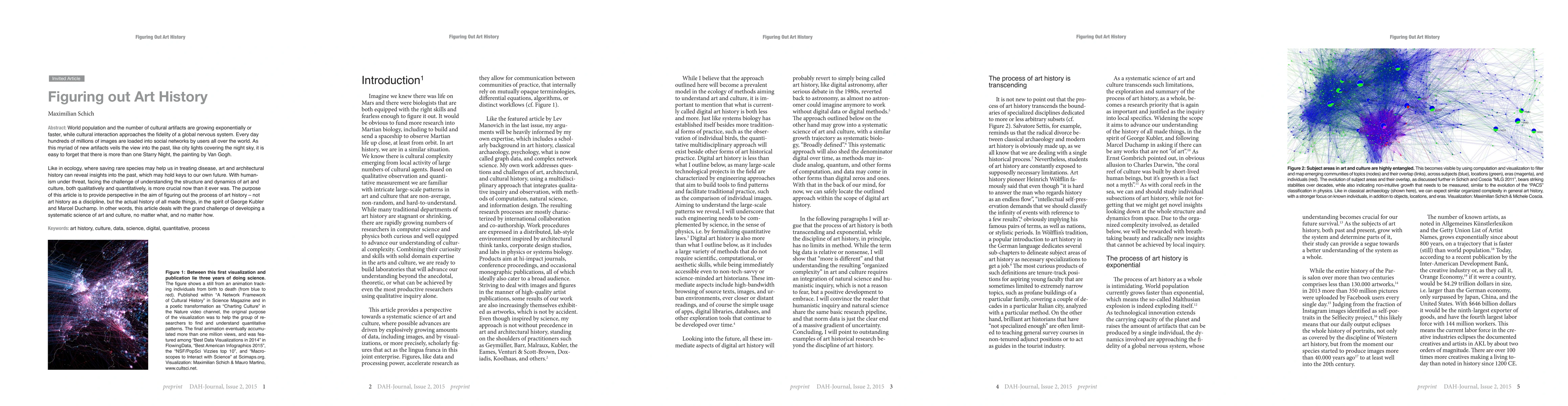 World population and the number of cultural artifacts are growing exponentially or faster, while cultural interaction approaches the fidelity of a global nervous system. Every day hundreds of millions of images are loaded into social networks by users all over the world. As this myriad of new artifacts veils the view into the past, like city lights covering the night sky, it is easy to forget that there is more than one Starry Night, the painting by Van Gogh. Like in ecology, where saving rare species may help us in treating disease, art and architectural history can reveal insights into the past, which may hold keys to our own future. With humanism under threat, facing the challenge of understanding the structure and dynamics of art and culture, both qualitatively and quantitatively, is more crucial now than it ever was. The purpose of this article is to provide perspective in the aim of figuring out the process of art history - not art history as a discipline, but the actual history of all made things, in the spirit of George Kubler and Marcel Duchamp. In other words, this article deals with the grand challenge of developing a systematic science of art and culture, no matter what, and no matter how.