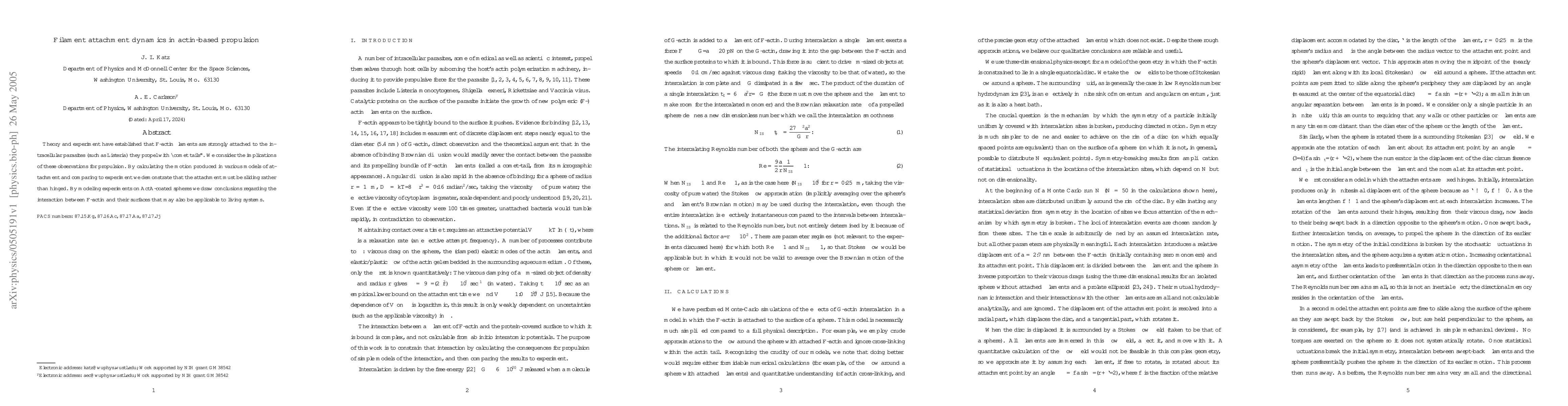 Theory and experiment have established that F-actin filaments are strongly attached to the intracellular parasites (such as Listeria) they propel with ``comet tails''. We consider the implications of these observations for propulsion. By calculating the motion produced in various models of attachment and comparing to experiment we demonstrate that the attachment must be sliding rather than hinged. By modeling experiments on ActA-coated spheres we draw conclusions regarding the interaction between F-actin and their surfaces that may also be applicable to living systems.