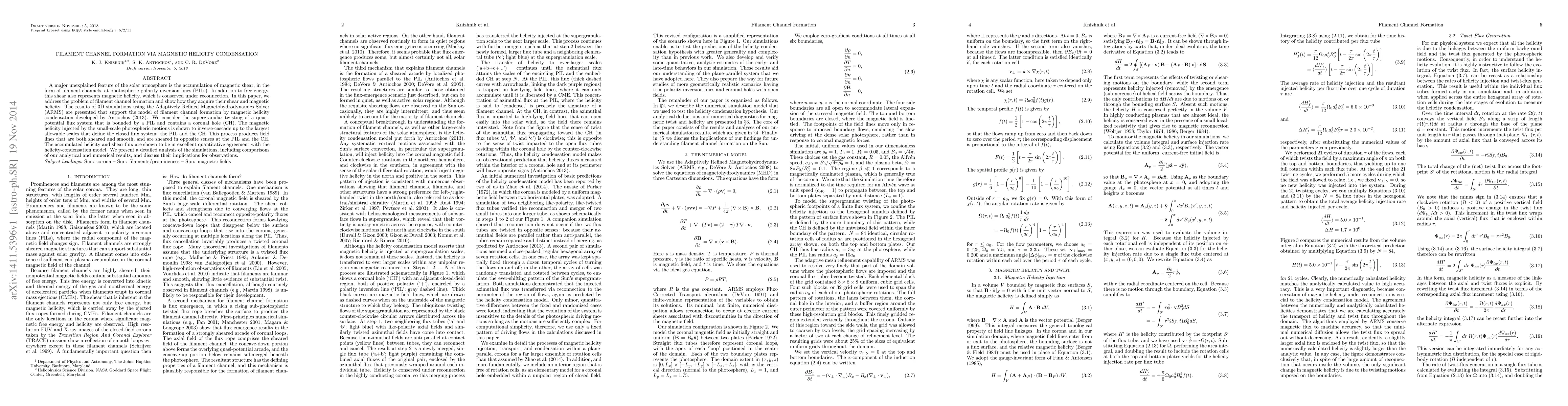 This paper investigates the formation of filament channels in the solar atmosphere through magnetic helicity condensation, using 3D simulations. The results support the model that small-scale motions inject helicity, which cascades to large scales, creating sheared and smooth magnetic field lines, consistent with observations.