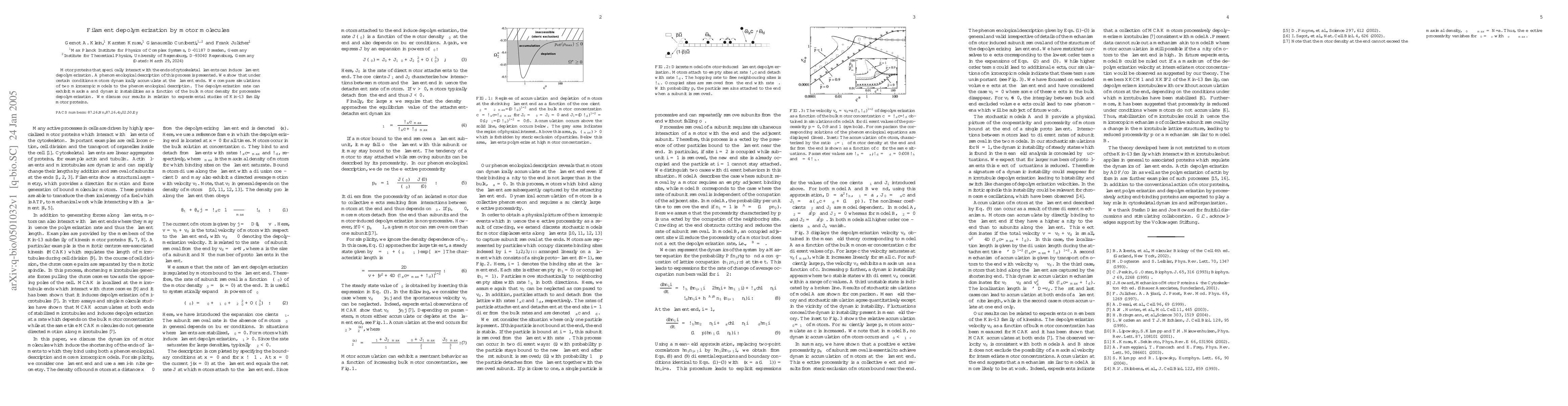 Researchers studied how motor proteins break down cytoskeletal filaments, finding that under certain conditions, motors can accumulate at the filament ends, leading to faster depolymerization rates with dynamic instabilities.