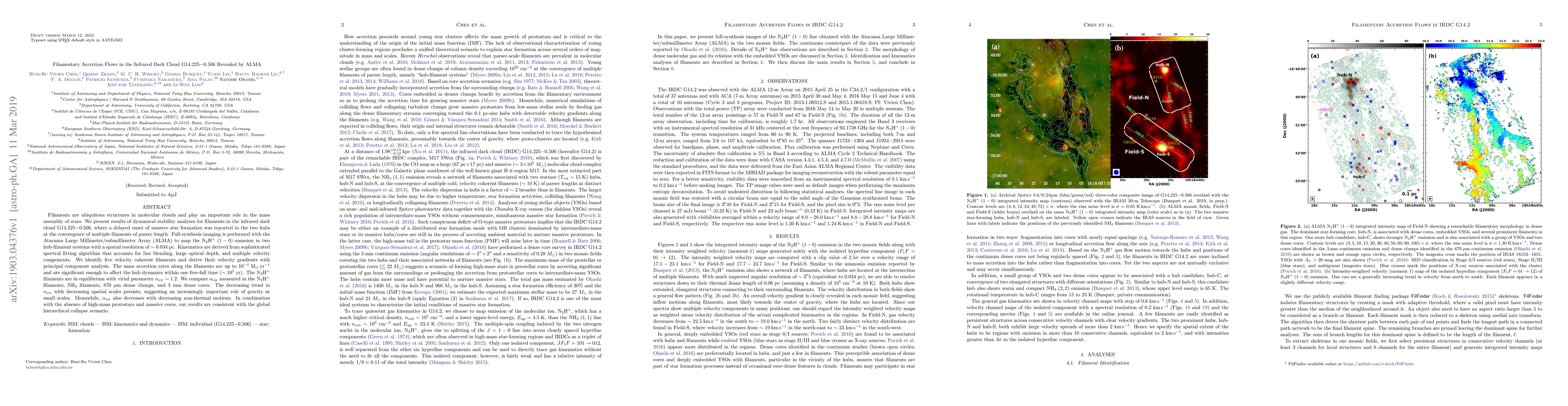 This paper uses ALMA observations to analyze the dynamical stability of filaments in the infrared dark cloud G14.225-0.506, revealing significant mass accretion rates and equilibrium conditions. The study finds a decreasing trend in the virial parameter with smaller scales, supporting a hierarchical collapse scenario.