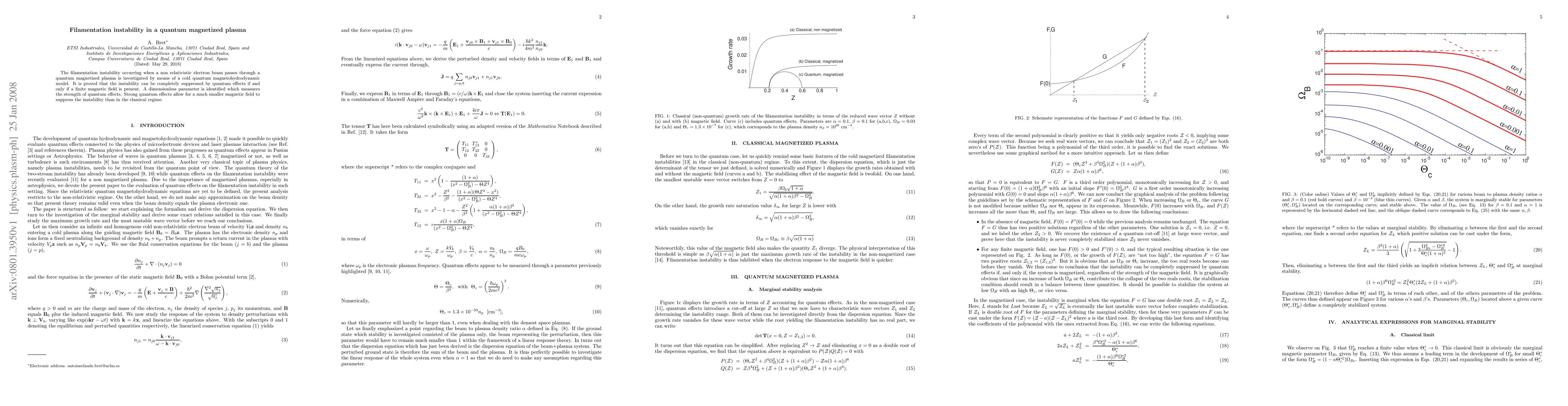 The filamentation instability in a quantum magnetized plasma can be completely suppressed by quantum effects when a finite magnetic field is present, according to a cold quantum magnetohydrodynamic model. A dimensionless parameter quantifies the strength of quantum effects, showing that stronger quantum effects require a smaller magnetic field to inhibit the instability compared to classical conditions.