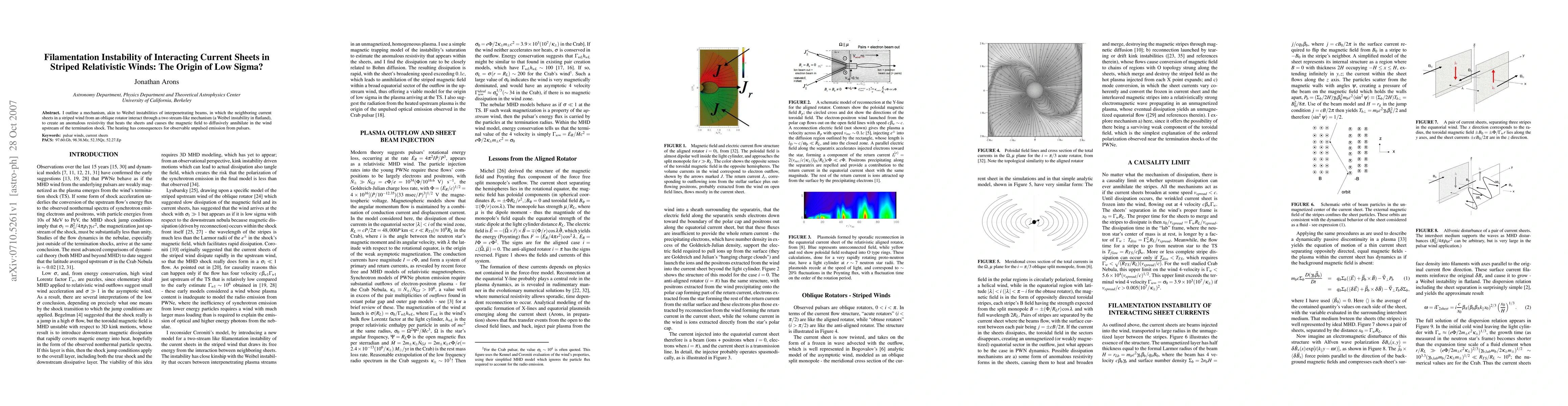 I outline a mechanism, akin to Weibel instabilities of interpenetrating beams, in which the neighboring current sheets in a striped wind from an oblique rotator interact through a two stream-like mechanism (a Weibel instability in flatland), to create an anomalous resistivity that heats the sheets and causes the magnetic field to diffusively annihilate in the wind upstream of the termination shock. The heating has consequences for observable unpulsed emission from pulsars.