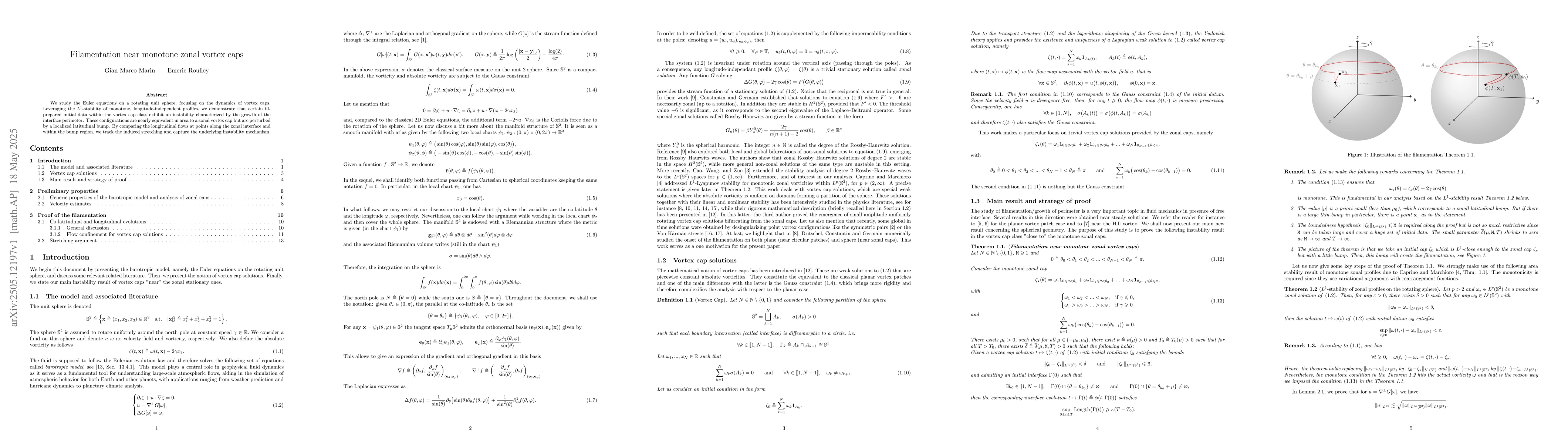 Introduces a method to analyze vortex cap instability using $L^1$-stability of monotone profiles on a rotating sphere.