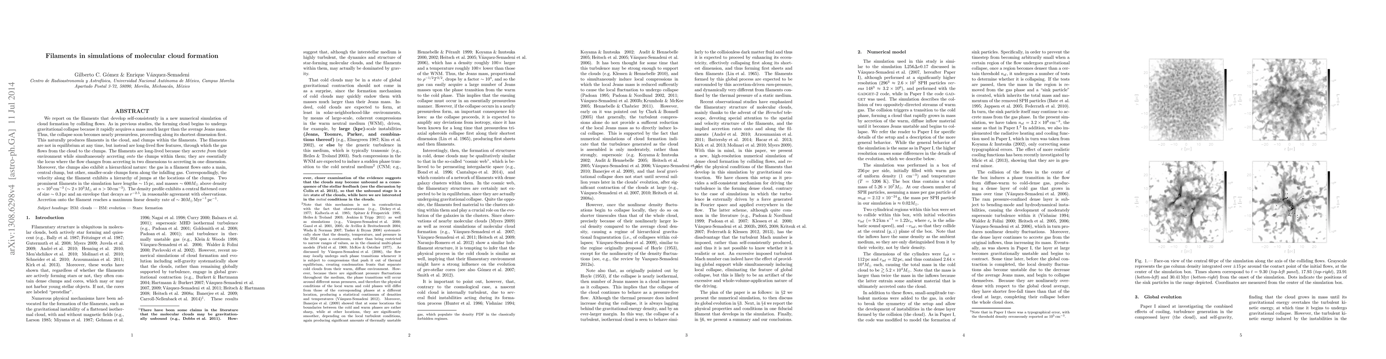 Researchers simulate cloud formation and find long-lived filaments that form through gravitational collapse, accreting gas from the environment and onto clumps within them.