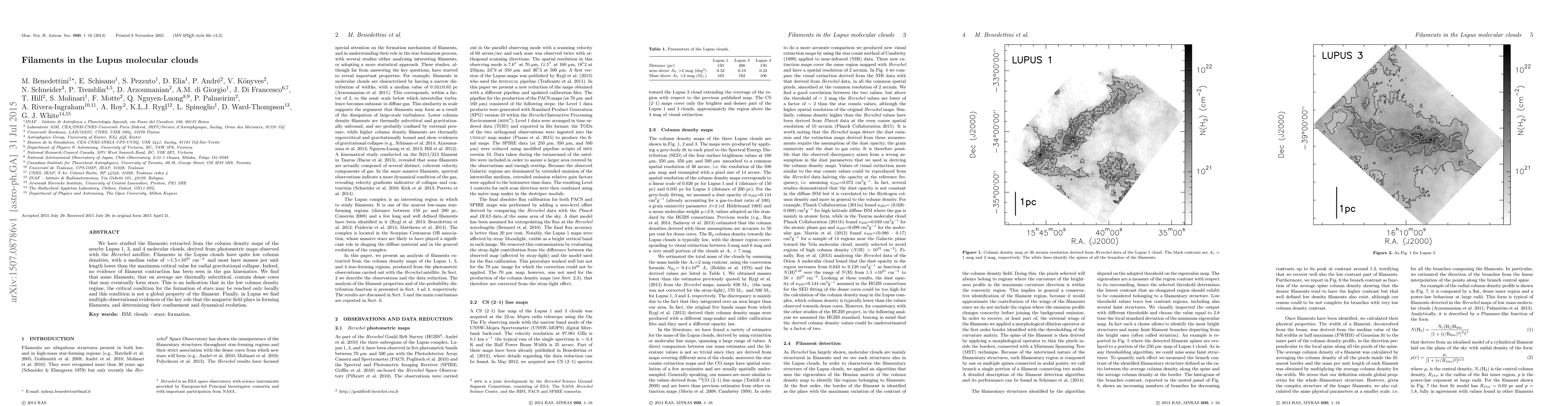 We have studied the filaments extracted from the column density maps of the nearby Lupus 1, 3, and 4 molecular clouds, derived from photometric maps observed with the Herschel satellite. Filaments in the Lupus clouds have quite low column densities, with a median value of $\sim$1.5$\times$10$^{21}$ cm$^{-2}$ and most have masses per unit length lower than the maximum critical value for radial gravitational collapse. Indeed, no evidence of filament contraction has been seen in the gas kinematics. We find that some filaments, that on average are thermally subcritical, contain dense cores that may eventually form stars. This is an indication that in the low column density regime, the critical condition for the formation of stars may be reached only locally and this condition is not a global property of the filament. Finally, in Lupus we find multiple observational evidences of the key role that the magnetic field plays in forming filaments, and determining their confinement and dynamical evolution.