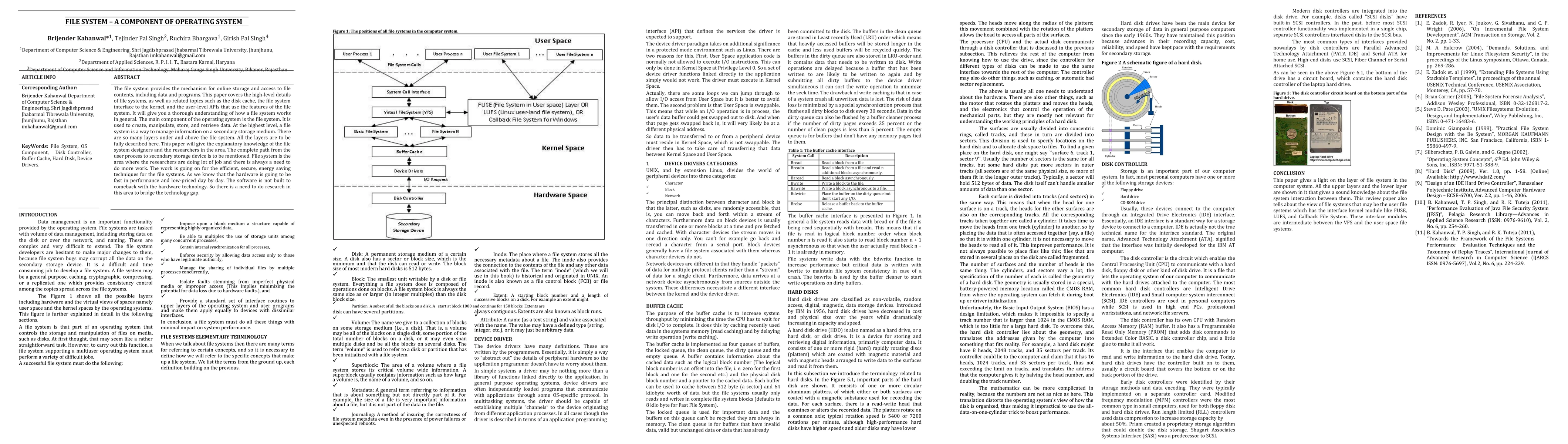 This paper provides a comprehensive overview of file systems as a crucial component of operating systems, detailing their mechanisms for data storage and retrieval, and discussing related topics like disk cache and user-level APIs. It emphasizes the ongoing research to develop efficient, secure, and energy-saving file systems to keep pace with advancing hardware.