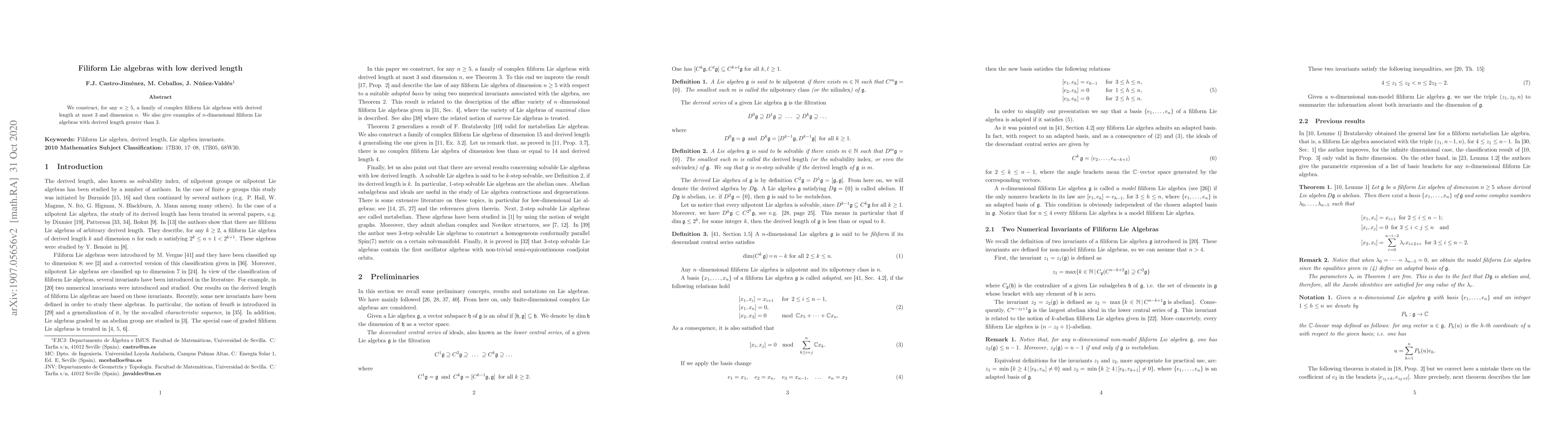 We construct, for any integer n greater than or equal to 5, a family of complex filiform Lie algebras with derived length at most 3 and dimension n. We also give examples of n-dimensional filiform Lie algebras with derived length greater than 3.