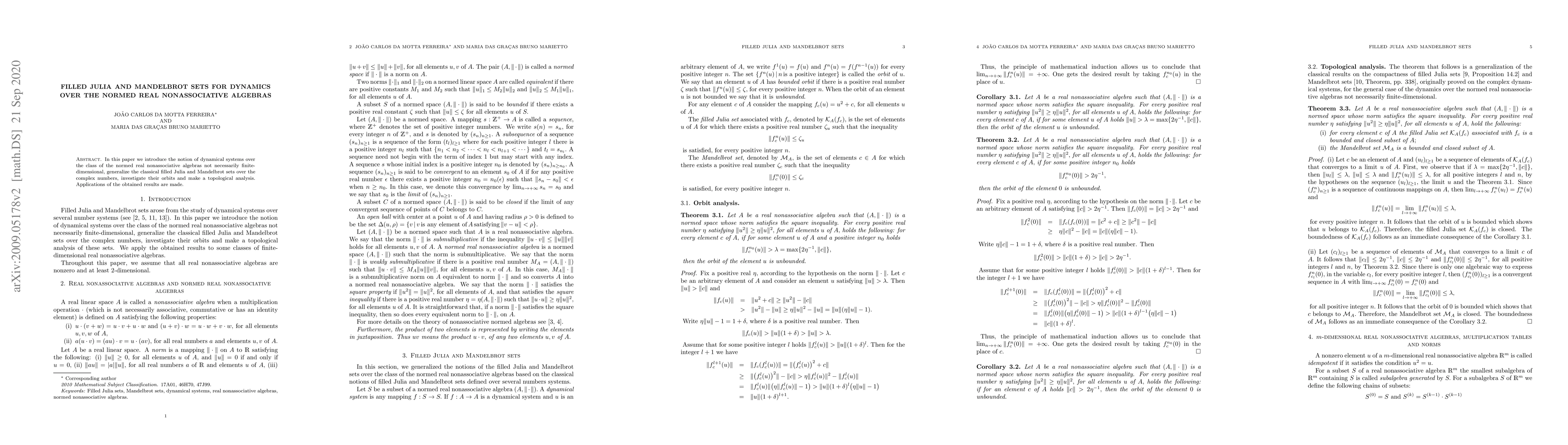 This paper generalizes the concepts of filled Julia and Mandelbrot sets to normed real nonassociative algebras, exploring their dynamical systems, orbits, and topological properties, with applications in mind. The study extends classical complex dynamics to a broader algebraic framework.