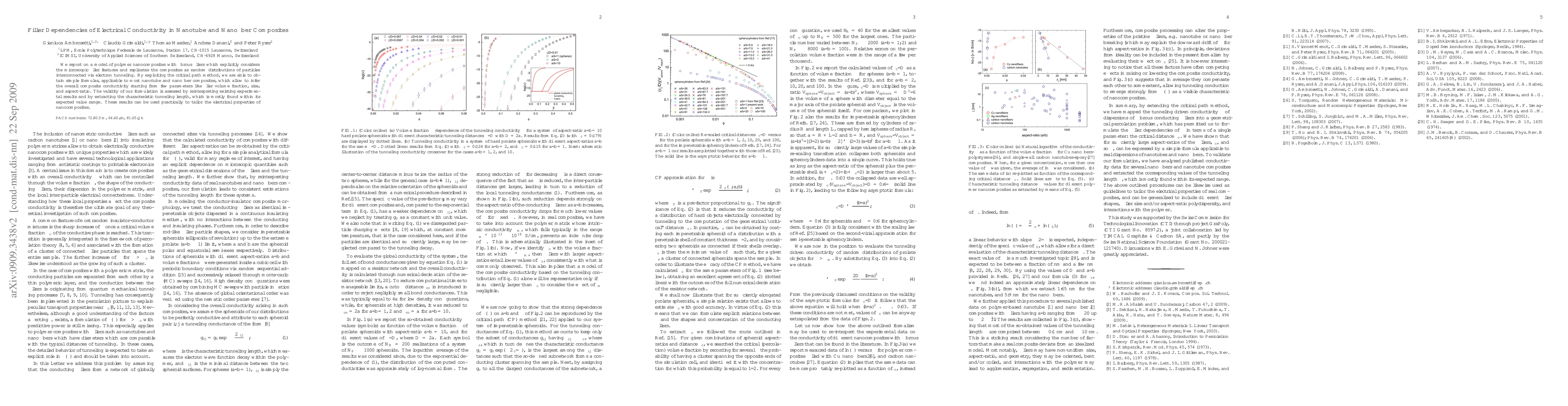 We report on a model of polymer nanocomposites with fibrous fillers which explicitly considers the microscopic filler features and replicates the composites as random distributions of particles interconnected via electron tunneling. By exploiting the critical path method, we are able to obtain simple formulas, applicable to most nanotube and nanofiber composites, which allow to infer the overall composite conductivity starting from few parameters like filler volume fraction, size, and aspect-ratio. The validity of our formulation is assessed by reinterpreting existing experimental results and by extracting the characteristic tunneling length, which is mostly found within its expected value range. These results can be used practically to tailor the electrical properties of nanocomposites.