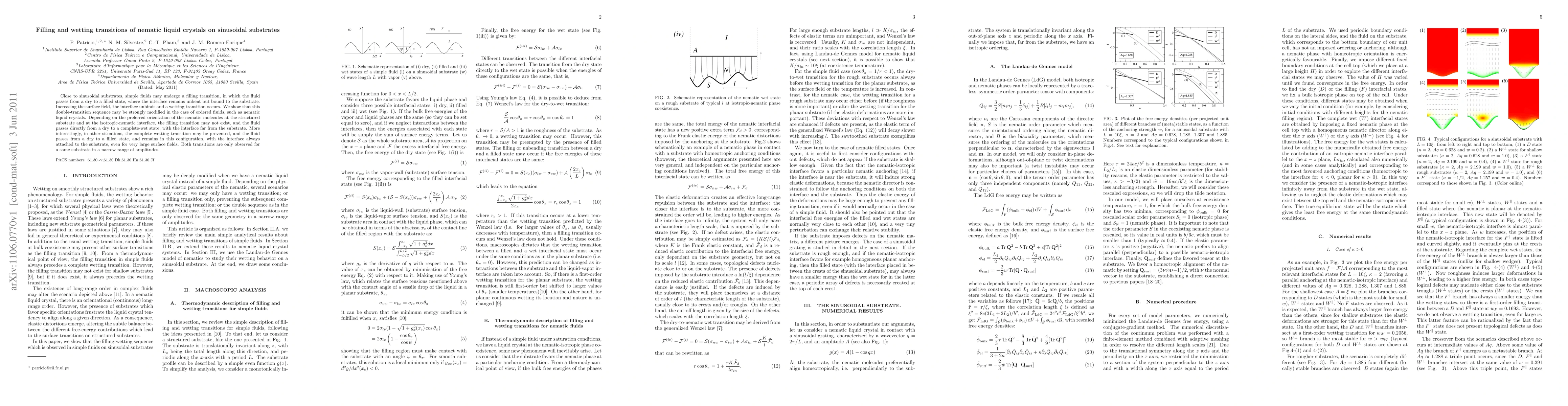 This study investigates the filling and wetting transitions of nematic liquid crystals near sinusoidal substrates, revealing that ordered fluids can bypass the typical filling transition and directly achieve complete wetting, or remain in a filled state even under large surface fields, depending on molecular orientation. Both transitions are observed only within a narrow range of substrate amplitudes.