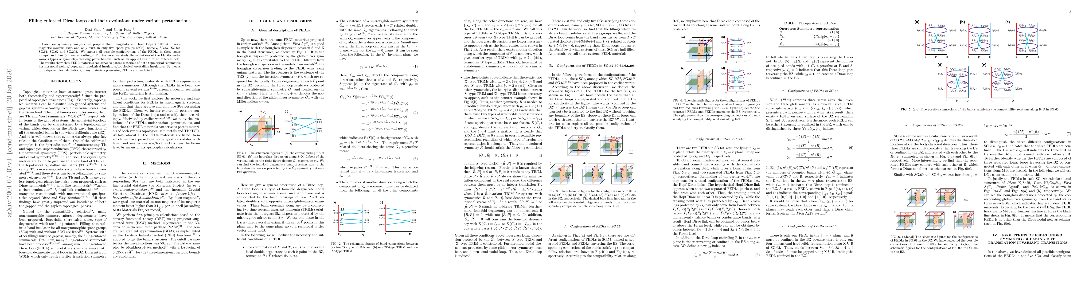 This paper proposes the existence of filling-enforced Dirac loops (FEDLs) in five specific space groups, classifies their configurations, and studies their evolution under perturbations. FEDLs are predicted to be precursors for topological semimetals and insulators, with first-principles calculations identifying many candidate materials.