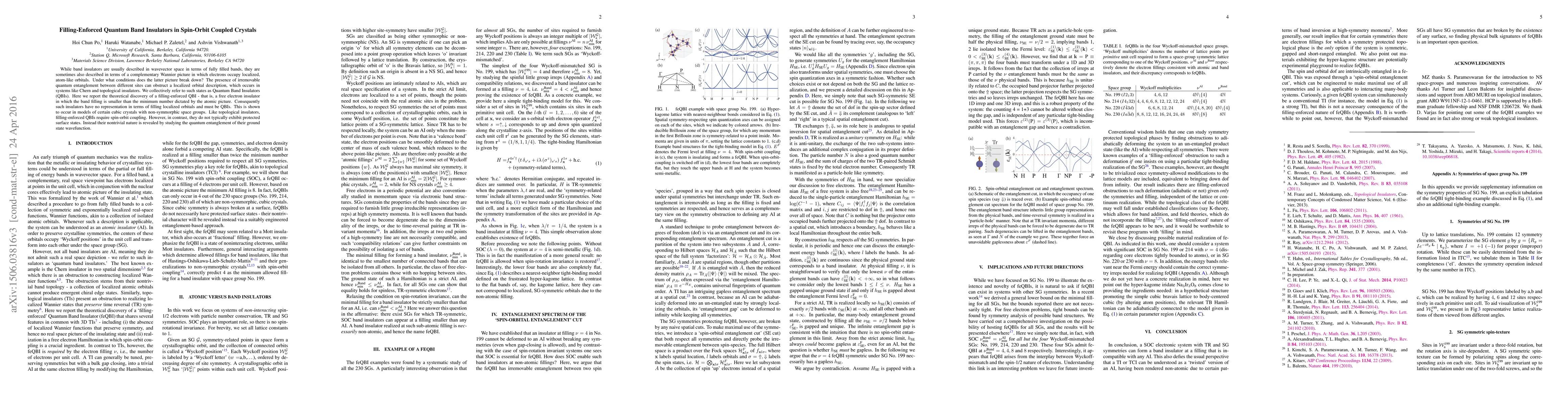 This research introduces a novel type of Quantum Band Insulator (QBI) in spin-orbit coupled crystals where band filling is less than the atomic orbital picture dictates, revealing quantum entanglement in their ground state wavefunction rather than surface states. Unlike topological insulators, these filling-enforced QBIs emerge in specific cubic crystals with non-symmorphic space groups.