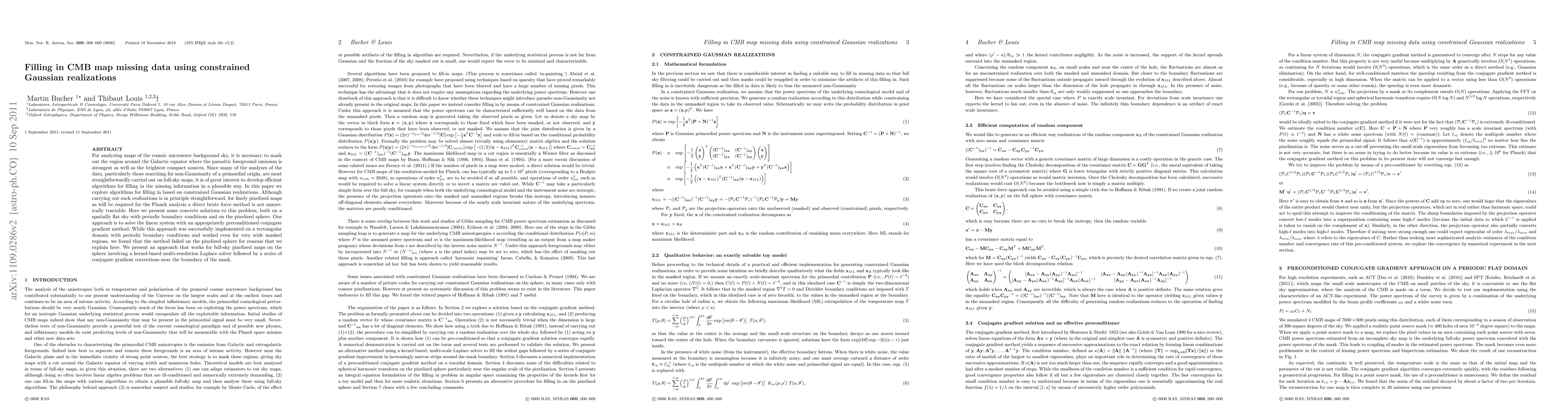 For analyzing maps of the cosmic microwave background sky, it is necessary to mask out the region around the galactic equator where the parasitic foreground emission is strongest as well as the brightest compact sources. Since many of the analyses of the data, particularly those searching for non-Gaussianity of a primordial origin, are most straightforwardly carried out on full-sky maps, it is of great interest to develop efficient algorithms for filling in the missing information in a plausible way. We explore practical algorithms for filling in based on constrained Gaussian realizations. Although carrying out such realizations is in principle straightforward, for finely pixelized maps as will be required for the Planck analysis a direct brute force method is not numerically tractable. We present some concrete solutions to this problem, both on a spatially flat sky with periodic boundary conditions and on the pixelized sphere. One approach is to solve the linear system with an appropriately preconditioned conjugate gradient method. While this approach was successfully implemented on a rectangular domain with periodic boundary conditions and worked even for very wide masked regions, we found that the method failed on the pixelized sphere for reasons that we explain here. We present an approach that works for full-sky pixelized maps on the sphere involving a kernel-based multi-resolution Laplace solver followed by a series of conjugate gradient corrections near the boundary of the mask.