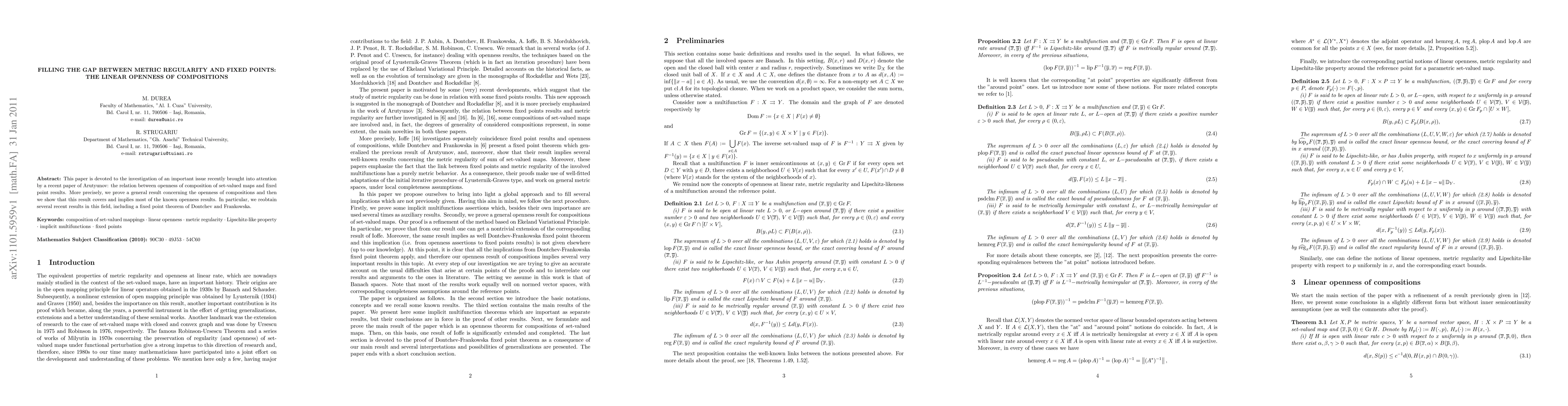 The paper presents a novel approach to linking the linear openness of compositions of set-valued maps with metric regularity, thereby providing a comprehensive understanding of fixed point theorems.