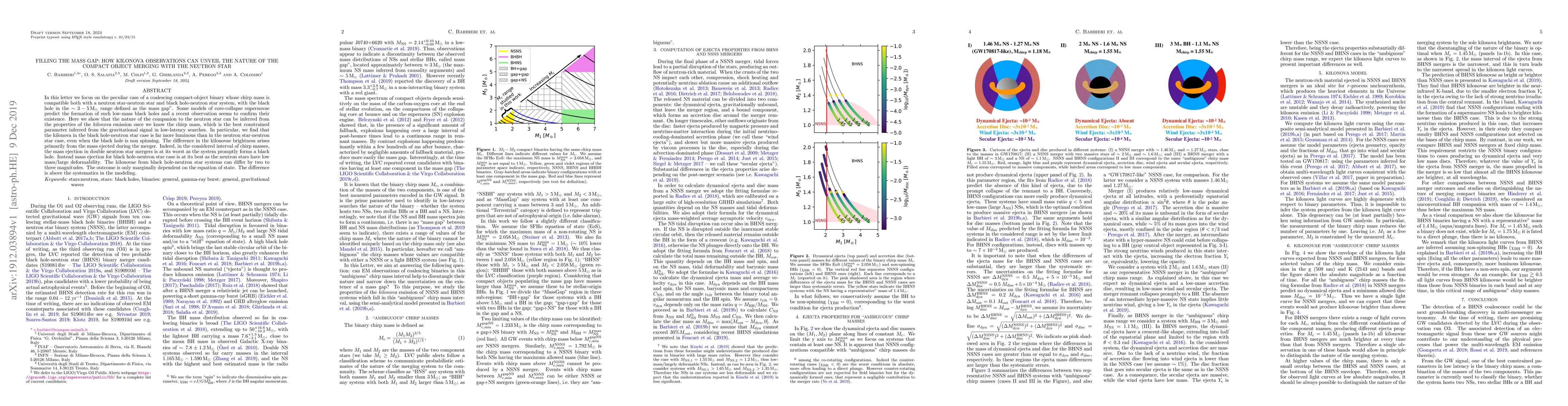 In this letter we focus on the peculiar case of a coalescing compact-object binary whose chirp mass is compatible both with a neutron star-neutron star and black hole-neutron star system, with the black hole in the $\sim 3-5M_\odot$ range defined as the "mass gap". Some models of core-collapse supernovae predict the formation of such low-mass black holes and a recent observation seems to confirm their existence. Here we show that the nature of the companion to the neutron star can be inferred from the properties of the kilonova emission once we know the chirp mass, which is the best constrained parameter inferred from the gravitational signal in low-latency searches. In particular, we find that the kilonova in the black hole-neutron star case is far more luminous than in the neutron star-neutron star case, even when the black hole is non spinning. The difference in the kilonovae brightness arises primarily from the mass ejected during the merger. Indeed, in the considered interval of chirp masses, the mass ejection in double neutron star mergers is at its worst as the system promptly forms a black hole. Instead mass ejection for black hole-neutron star case is at its best as the neutron stars have low mass/large deformability. The kilonovae from black hole-neutron star systems can differ by two to three magnitudes. The outcome is only marginally dependent on the equation of state. The difference is above the systematics in the modeling.