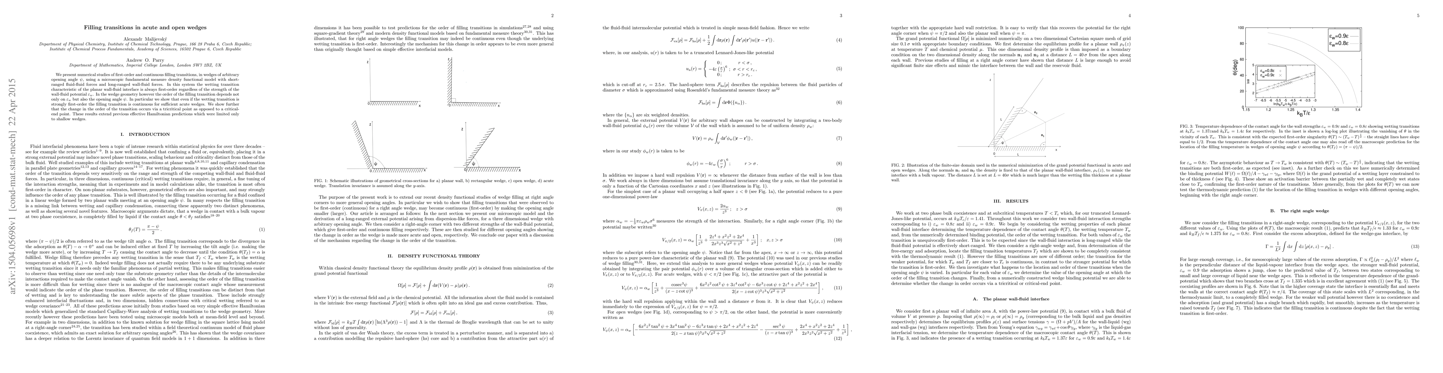 Detailed numerical analysis of filling transitions in wedges, identifying conditions for continuous transitions via tricritical points.