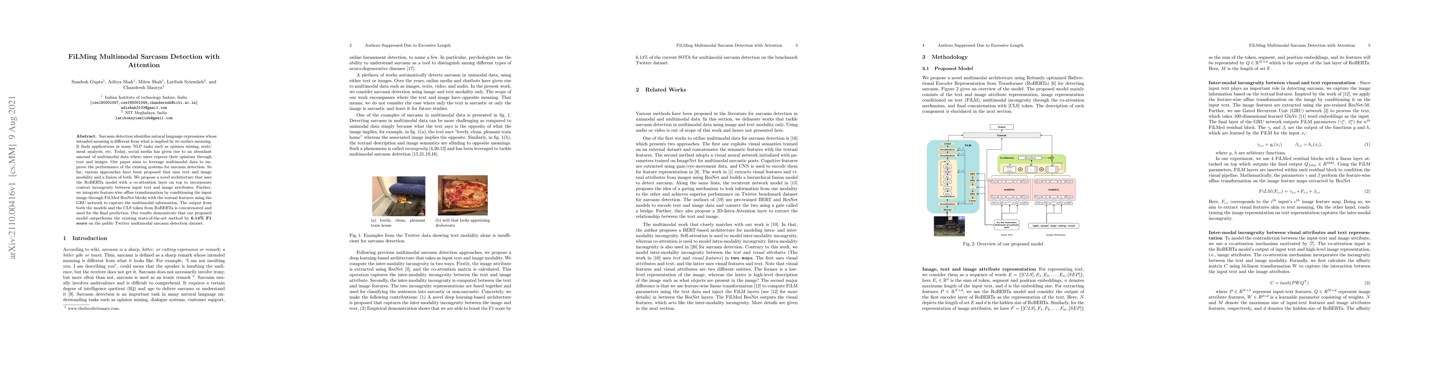 This paper proposes a novel multimodal sarcasm detection system that combines RoBERTa with a co-attention layer and FiLMed ResNet blocks, achieving a 6.14% improvement in F1 score on a Twitter dataset by leveraging both textual and image data. The method outperforms existing state-of-the-art approaches.