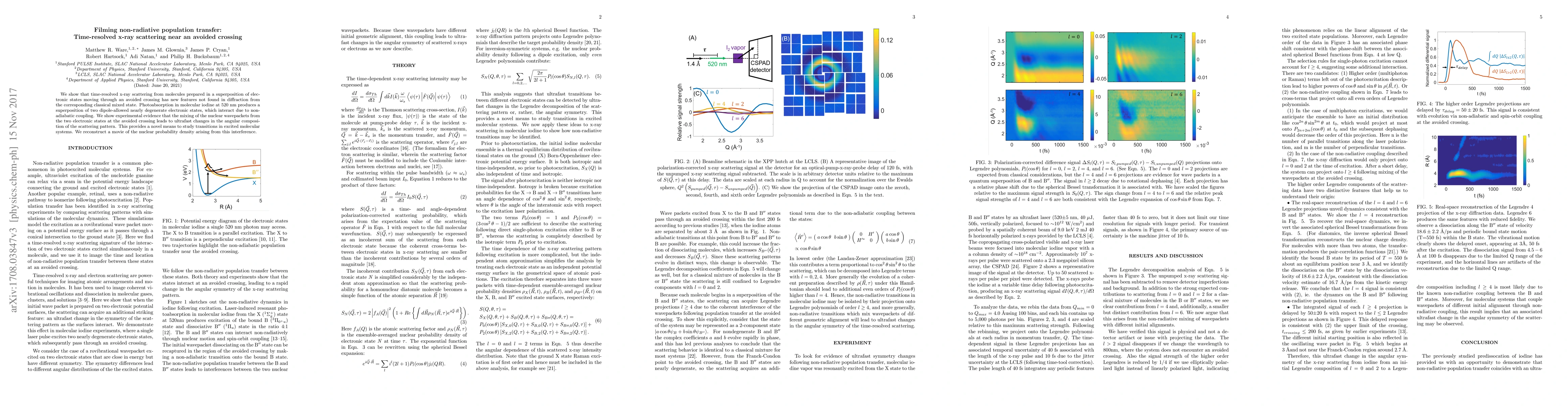 This research demonstrates time-resolved x-ray scattering revealing novel features in molecules at an avoided crossing, showing ultrafast changes in scattering patterns due to non-adiabatic coupling. The study reconstructs nuclear probability density movies, offering a new method to investigate transitions in excited molecular systems.