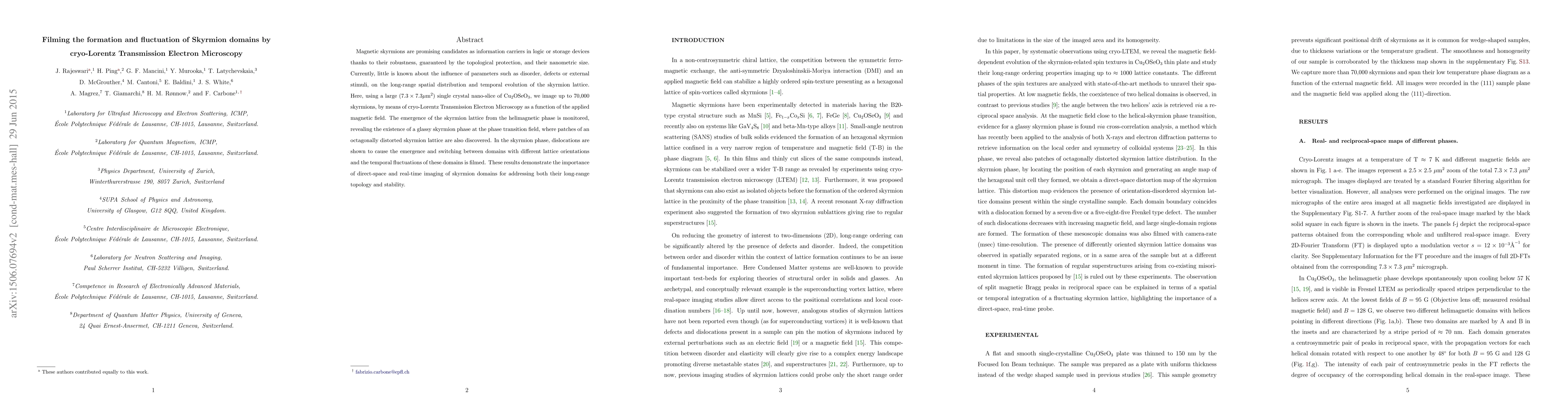 This paper employs cryo-Lorentz Transmission Electron Microscopy to observe the formation and fluctuation of skyrmion domains in Cu$_{2}$OSeO$_{3}$ under varying magnetic fields. The study reveals the emergence of a glassy skyrmion phase and the role of dislocations in domain switching and temporal fluctuations, highlighting the necessity of real-time imaging for understanding skyrmion stability and topology.