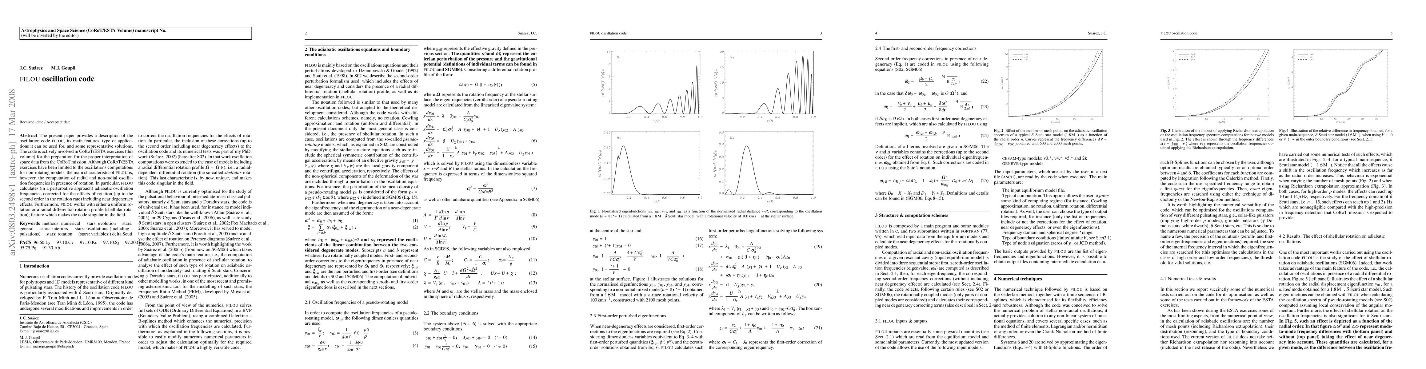The present paper provides a description of the oscillation code FILOU, its main features, type of applications it can be used for, and some representative solutions. The code is actively involved in CoRoT/ESTA exercises (this volume) for the preparation for the proper interpretation of space data from the CoRoT mission. Although CoRoT/ESTA exercises have been limited to the oscillations computations for non-rotating models, the main characteristic of FILOU is, however, the computation of radial and non-radial oscillation frequencies in presence of rotation. In particular, FILOU calculates (in a perturbative approach) adiabatic oscillation frequencies corrected for the effects of rotation (up to the second order in the rotation rate) including near degeneracy effects. Furthermore, FILOU works with either a uniform rotation or a radial differential rotation profile (shellular rotation), feature which makes the code singular in the field.