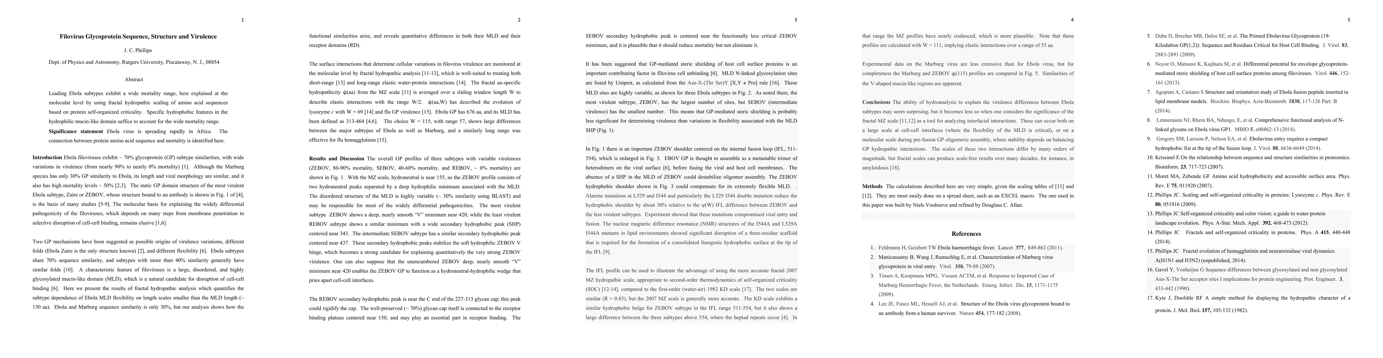 Leading Ebola subtypes exhibit a wide mortality range, here explained at the molecular level by using fractal hydropathic scaling of amino acid sequences based on protein self-organized criticality. Specific hydrophobic features in the hydrophilic mucin-like domain suffice to account for the wide mortality range. Significance statement: Ebola virus is spreading rapidly in Africa. The connection between protein amino acid sequence and mortality is identified here.