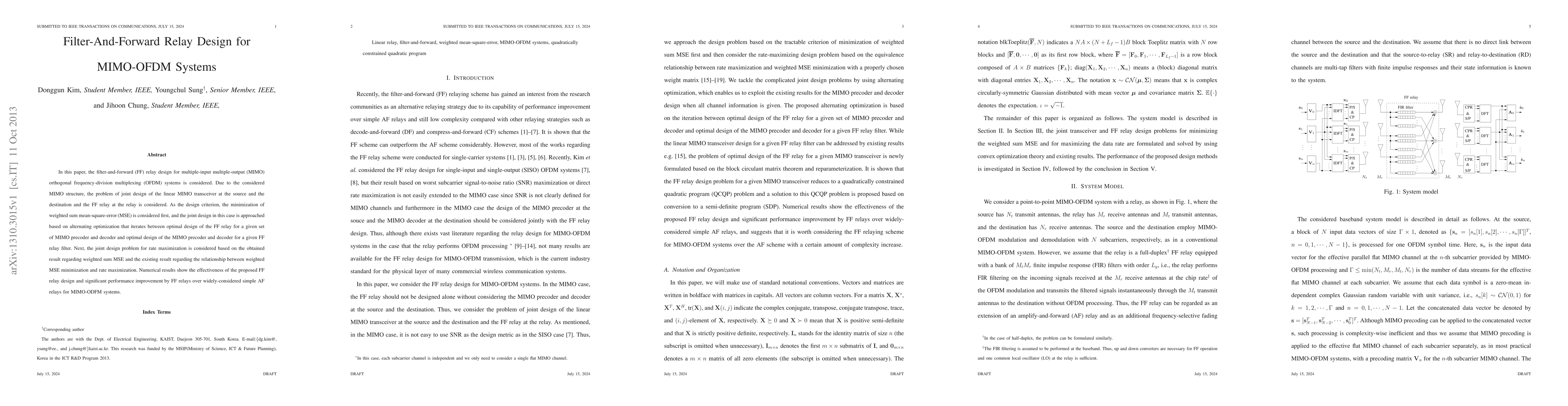 A new filter-and-forward relay design for MIMO-OFDM systems is proposed to minimize weighted sum mean-square-error and improve performance over simple AF relays.