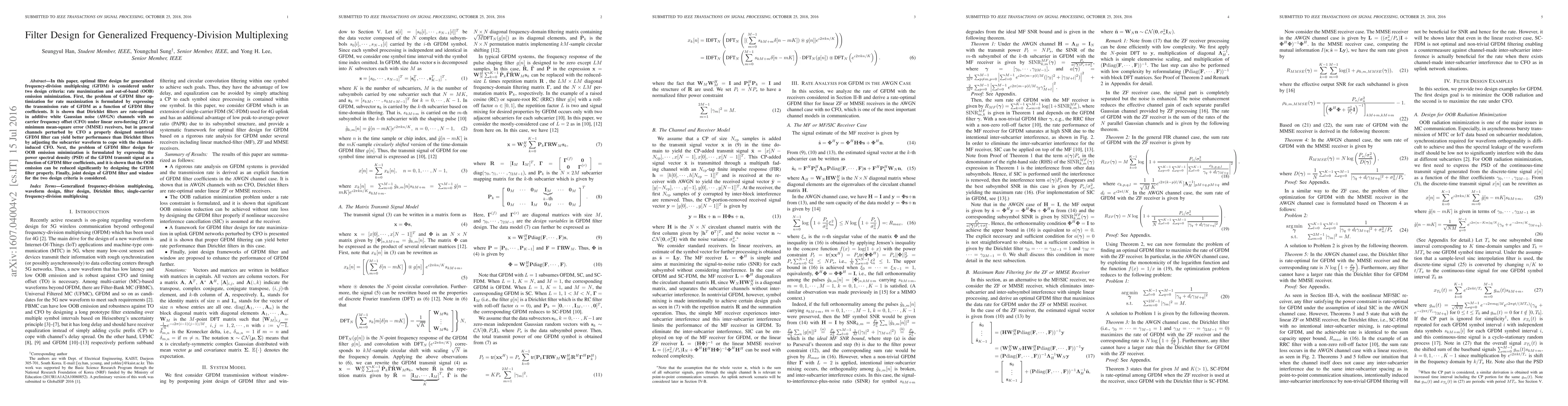 This paper explores optimal filter design for generalized frequency-division multiplexing (GFDM) focusing on rate maximization and out-of-band emission minimization. It finds that Dirichlet filters are optimal for rate in ideal conditions, but tailored GFDM filters can outperform them in channels with carrier frequency offset. It also demonstrates that proper GFDM filter design can significantly reduce out-of-band emissions.