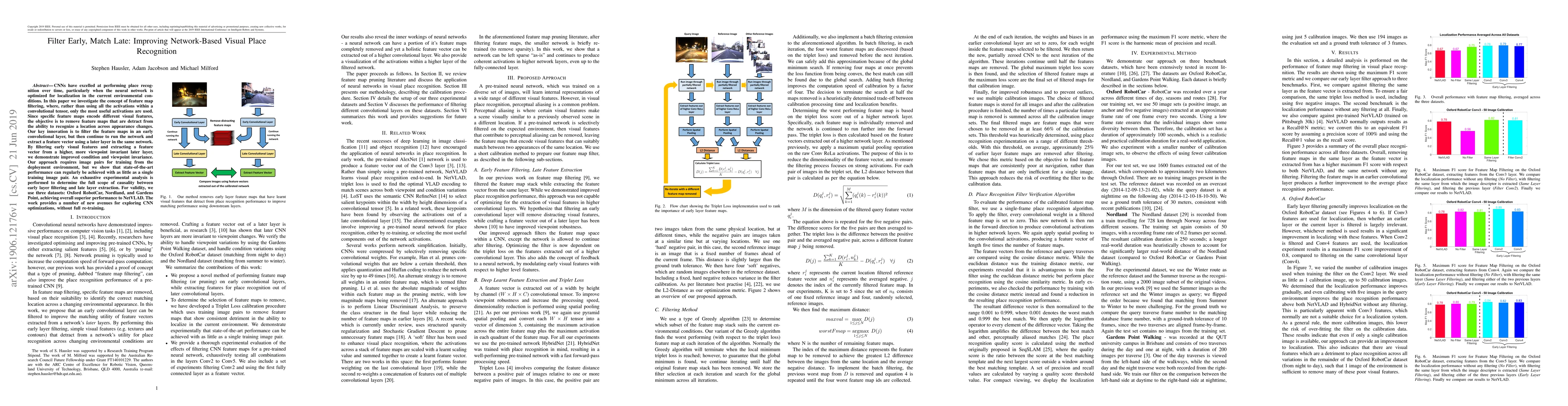 This research explores the optimization of convolutional neural networks (CNNs) for visual place recognition through early feature map filtering and late feature vector extraction. The study demonstrates improved invariance to conditions and viewpoints by selectively using only the most useful activations early in the network, while still leveraging later layers for robust feature vectors. The method achieves state-of-the-art performance with minimal training data and is validated across multiple datasets.