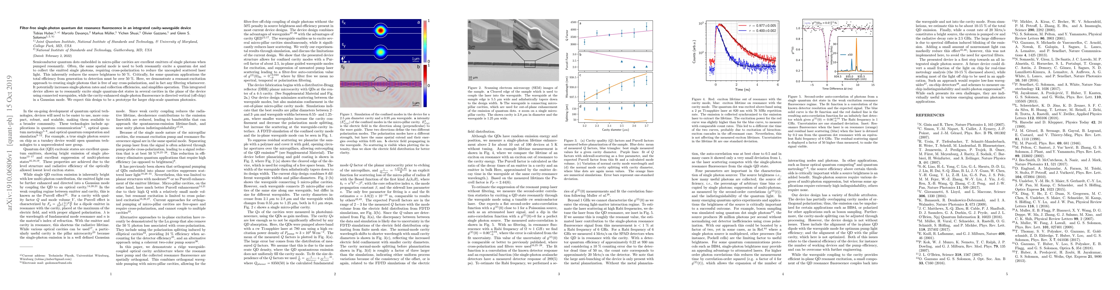 This paper presents an integrated cavity-waveguide device that generates single-photon quantum dot resonance fluorescence without cross-polarization or filtering, potentially increasing efficiency and simplifying operation for quantum applications. The device uses resonant excitation to enhance single-photon rates and collection efficiencies.