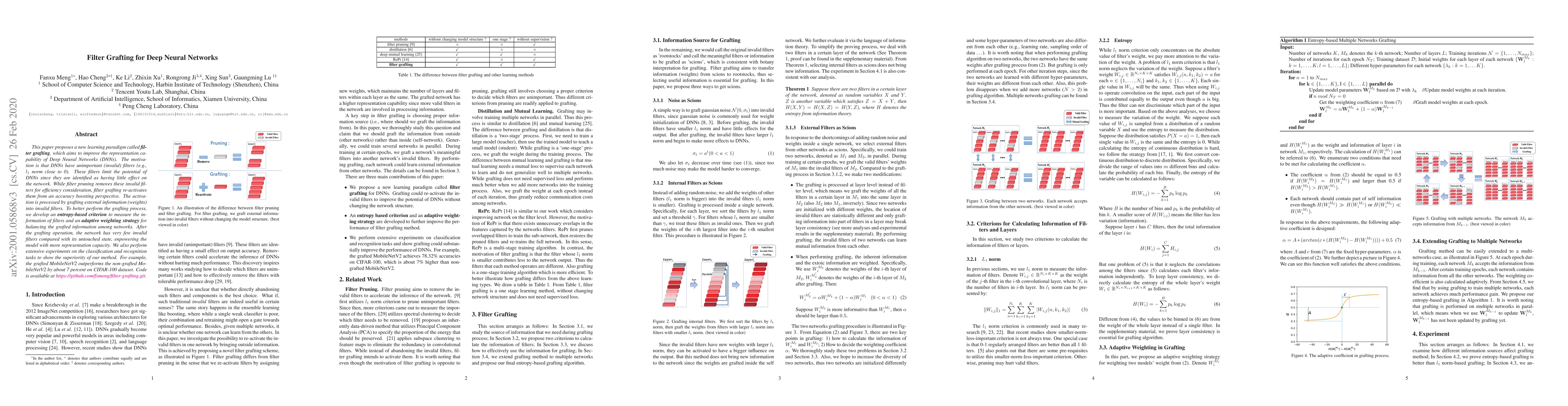 This paper proposes filter grafting to improve deep neural networks by re-activating unimportant filters with external information, increasing representation capacity and improving performance on classification tasks.