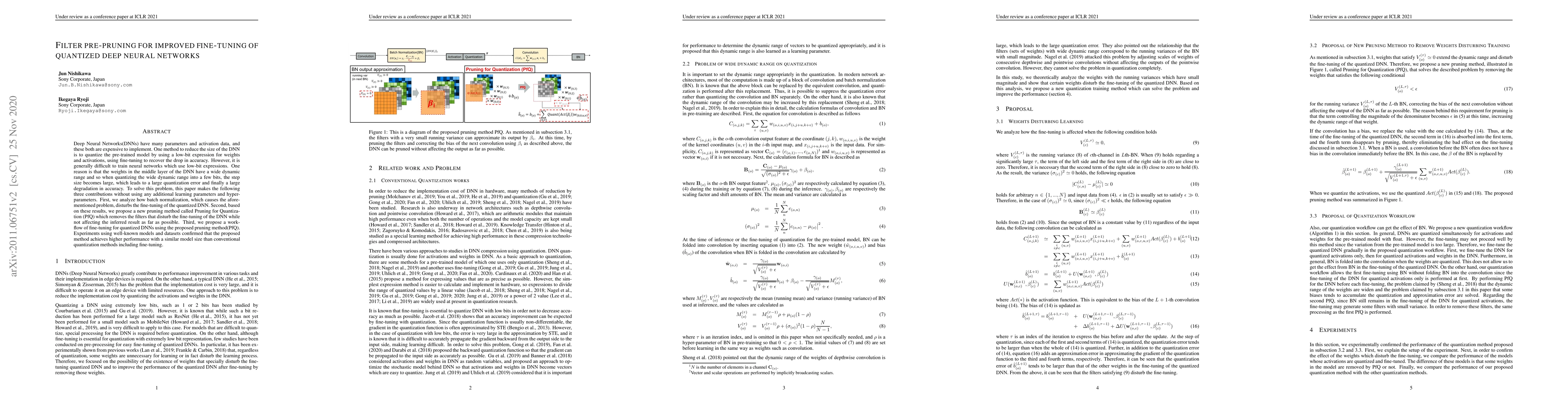 This paper proposes a filter pre-pruning method called Pruning for Quantization (PfQ) to improve the fine-tuning of quantized deep neural networks. The method removes filters that cause large quantization errors without affecting inference results, achieving higher performance compared to conventional methods.