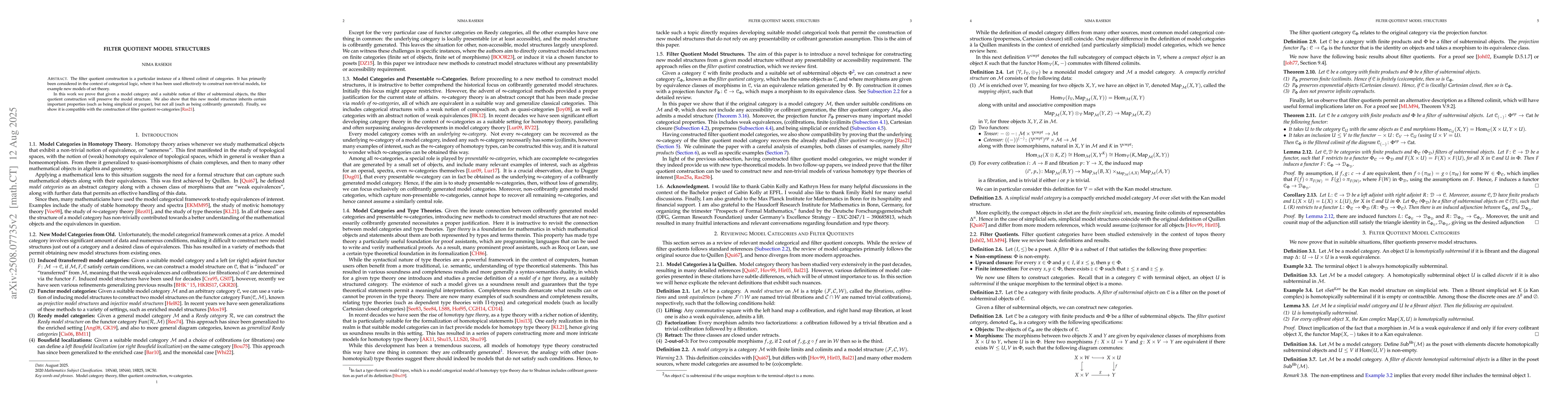 The filter quotient construction is a particular instance of a filtered colimit of categories. It has primarily been considered in the context of categorical logic, where it has been used effectively to construct non-trivial models, for example new models of set theory. In this work we prove that given a model category and a suitable notion of filter of subterminal objects, the filter quotient construction will preserve the model structure. We also show that this new model structure inherits certain important properties (such as being simplicial or proper), but not all (such as being cofibrantly generated). Finally, we show it is compatible with the construction of filter quotient $\infty$-categories.