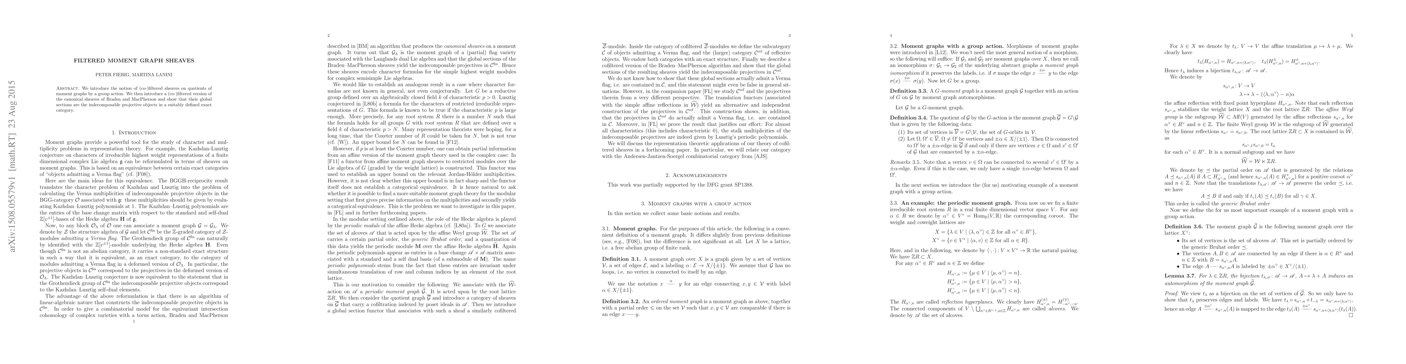 We introduce the notion of (co-)filtered sheaves on quotients of moment graphs by a group action. We then introduce a (co-)filtered version of the canonical sheaves of Braden and MacPherson and show that their global sections are the indecomposable projective objects in a suitably defined exact category.