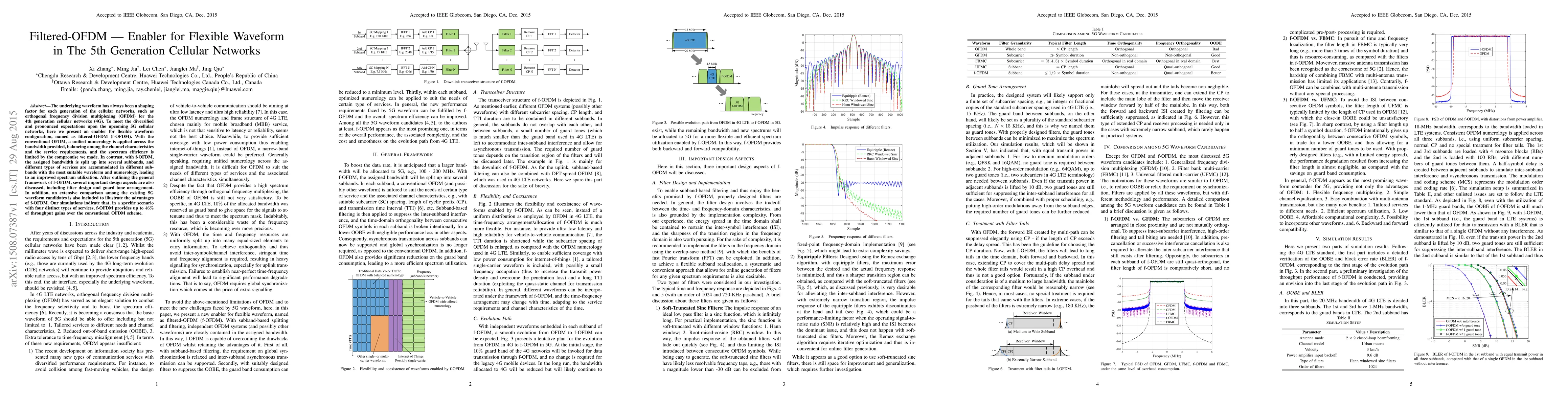 Filtered-OFDM (f-OFDM) is proposed as a flexible waveform for 5G cellular networks, allowing different services to be accommodated in subbands with optimal configurations, thus improving spectrum efficiency. Simulation results show f-OFDM can achieve up to 46% higher throughput compared to conventional OFDM.