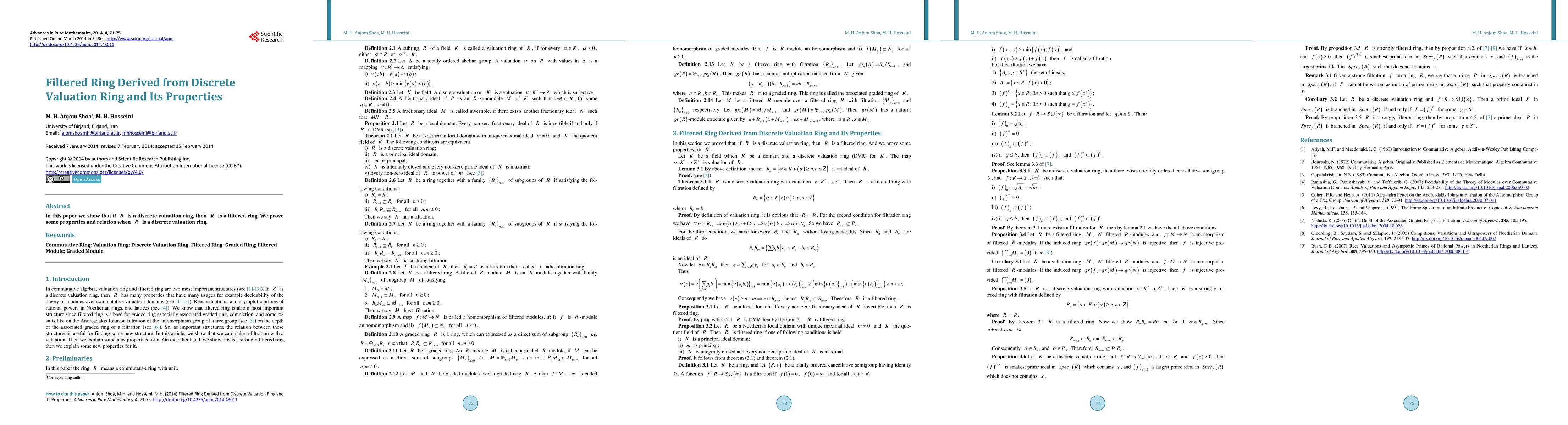 Summary: This paper demonstrates that a discrete valuation ring R is a filtered ring and explores its properties and relations, establishing key characteristics inherent to such rings.