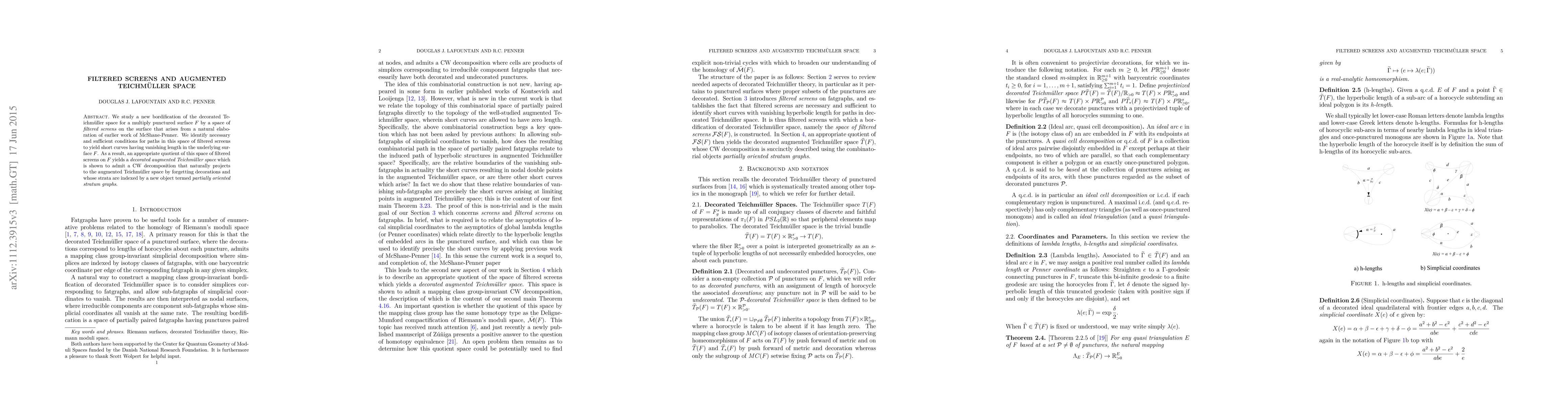 The paper introduces a new bordification of decorated Teichmüller space through filtered screens, identifying conditions for paths yielding short curves. This leads to a decorated augmented Teichmüller space with a CW decomposition, whose strata are indexed by partially oriented stratum graphs.