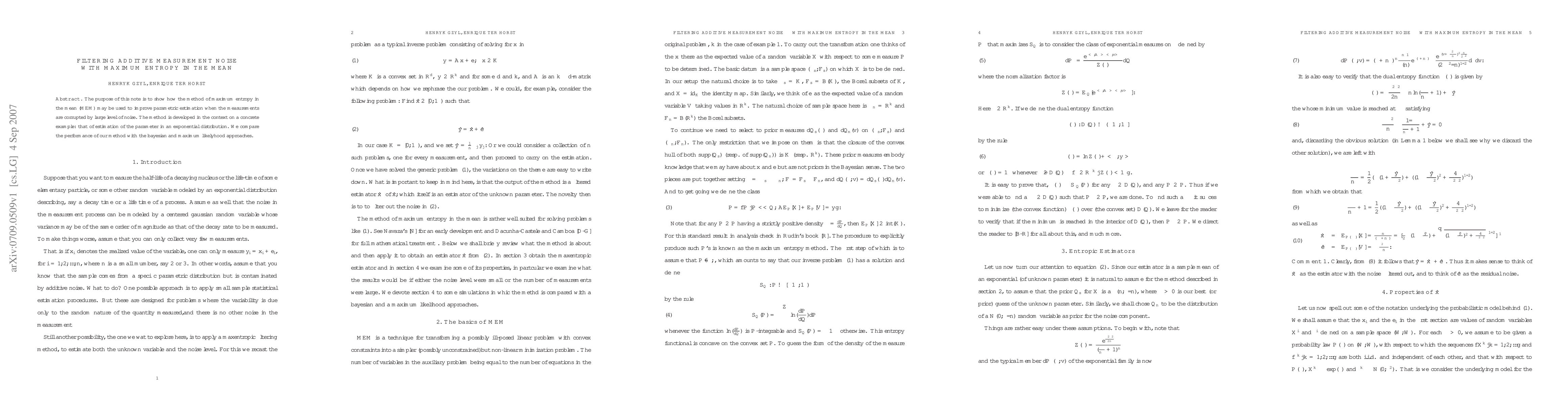 This paper proposes using maximum entropy in the mean (MEM) to enhance parametric estimation in noisy measurements, specifically for an exponential distribution. The MEM method is compared to Bayesian and maximum likelihood approaches, demonstrating its effectiveness in filtering additive measurement noise.