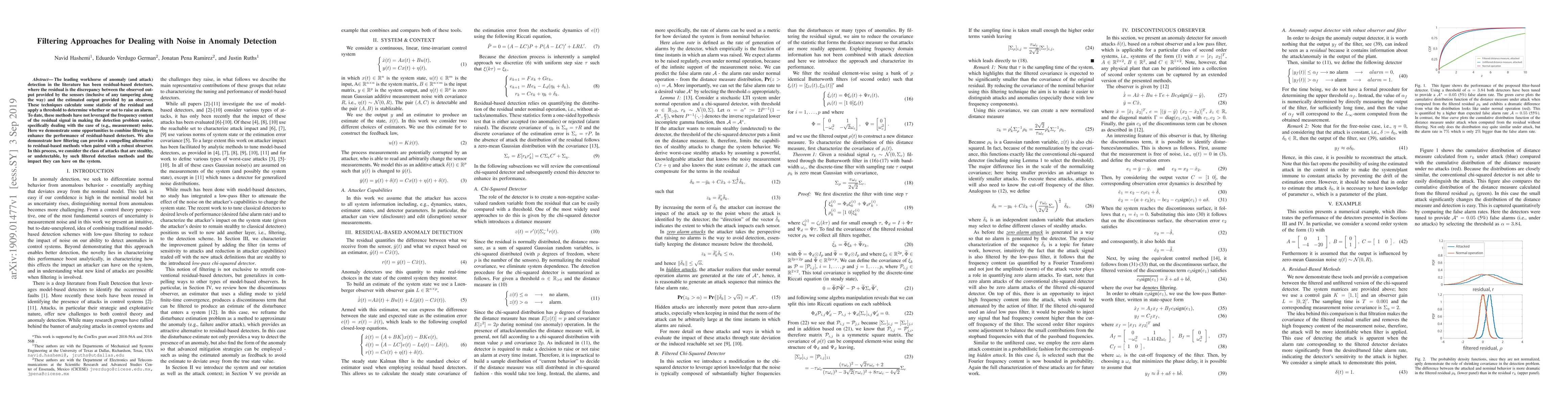 Researchers investigated using filtering techniques to enhance anomaly detection methods, finding that they can provide a compelling alternative to traditional residual-based detectors when paired with robust observers. This approach can help detect stealthy attacks more effectively.