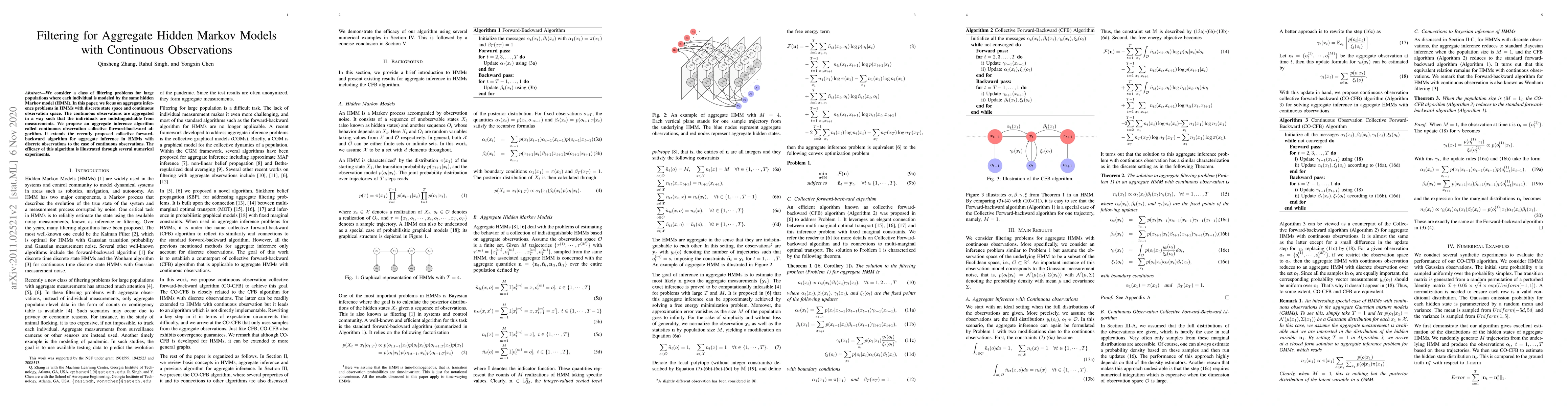 This paper proposes an aggregate inference algorithm for large populations modeled by hidden Markov models with continuous observations. The continuous observation collective forward-backward algorithm extends existing methods for discrete observations and is validated through numerical experiments.